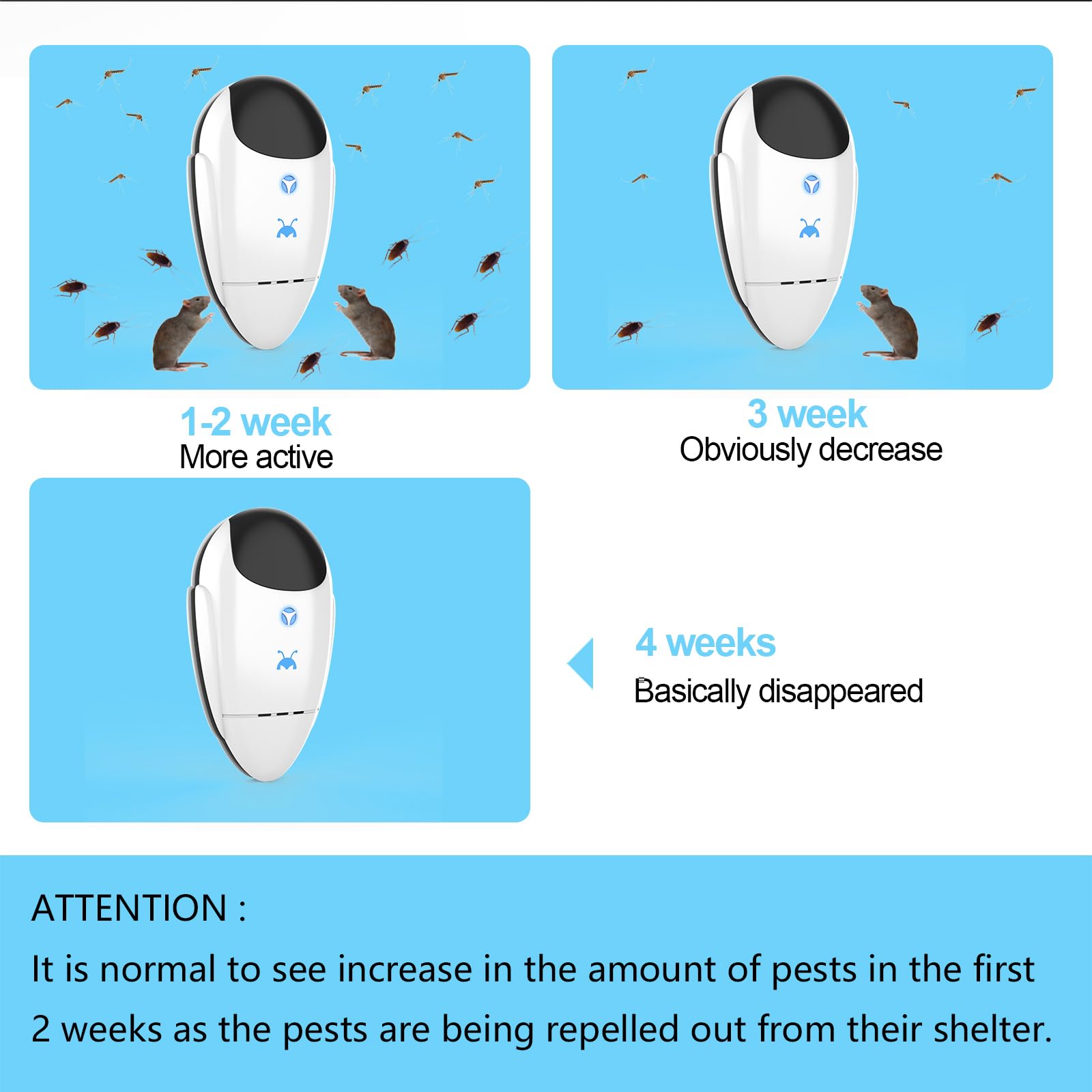 • How It Works: Our device utilizes advanced ultrasonic technology to create an uncomfortable environment for unwanted guests, encouraging them to leave your space naturally. Consistent use over time influences pest behavior, promoting a pest-free home without harm.