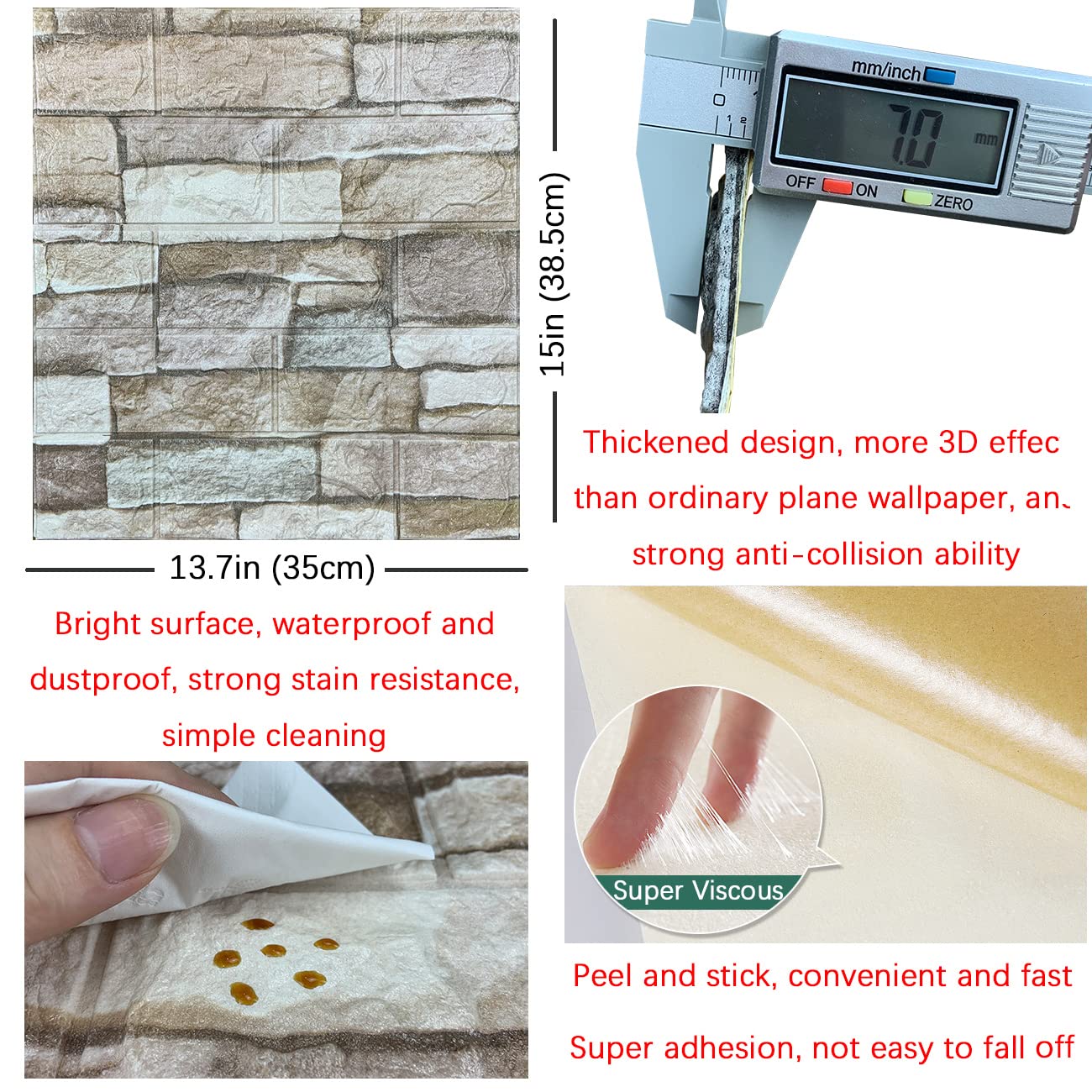 • Each set of 20 pieces of 3D faux stone wallpaper can cover 28.8 square feet.Please clean the wall before pasting to ensure that the surface of the wall is flat, dry, free of dust, and the skin does not fall off, otherwise the pasting effect will be affected. It can be pasted on mo smooth or flat surfaces, such as cement wall, lime wall, glass, steel, wood, paint wall, etc.