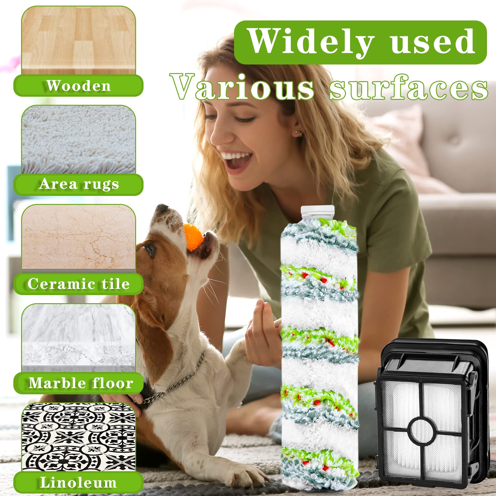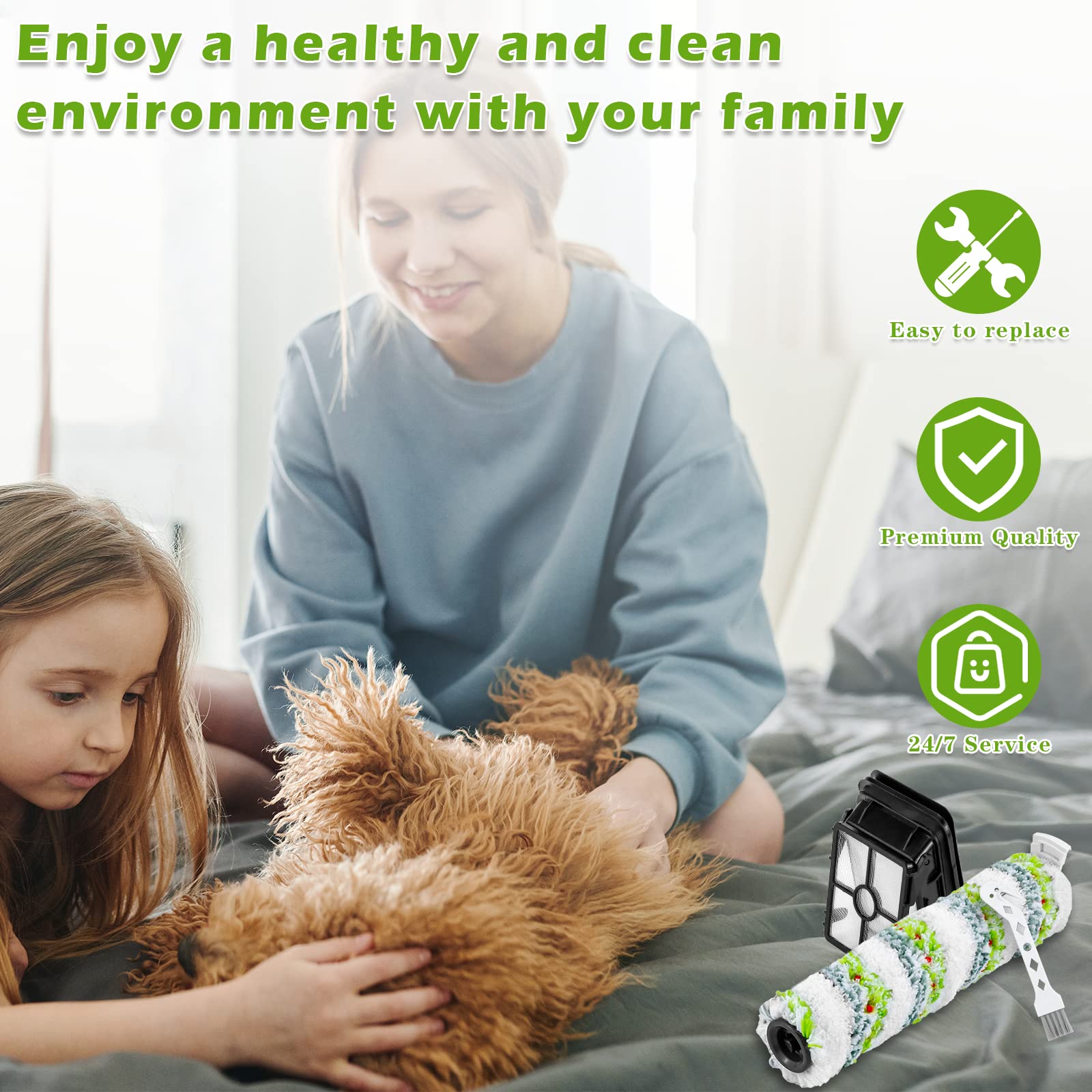 • PREMIUM QUALITY: The multi-surface brush roll is made of double-acting microfiber and nylons for mopping the floor, the bristles made of pp are used to pick up and scrub debris. The Multi-surface pet roller brush cleans hair and dirt using the vacuum's self-cleaning cycle, filter rinsable under running water,and let it completely air dry before next use,Recommend to replace the brush roll and filter every 3-6 months