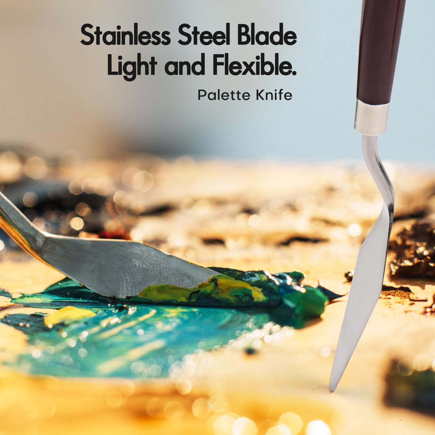 • Variety of Shapes & Sizes: Paint brushes for acrylic painting set includes 24 brushes in 9 series (Large Wide Flat, Flat, Filbert, Fan, Dagger, Cat Tongue, Round, Angle, Rigger), 1pc palette knife, 1pc portable canvas roll. A selection of sizes allows you to bring your vision to life on a large scale, in tiny detail, or anything in between!