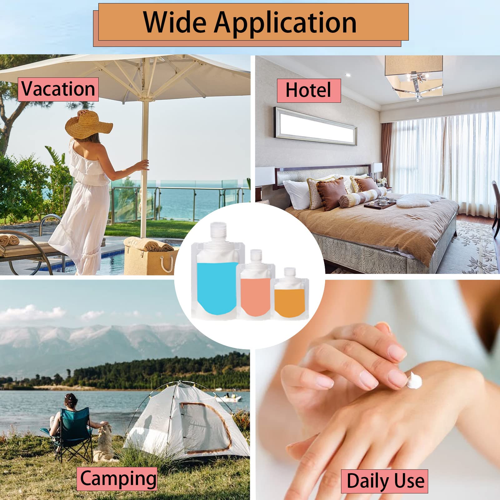 • 【Premium Quality & Design】-- The sub bags for travel are made of high quality PET plastic material, studry, refillable, reusable and lightweight. And the flat pouch style not only makes it less space-consuming, but also allows it to stand up on its own.