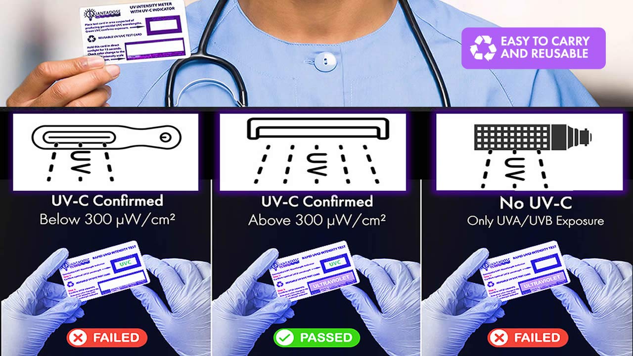 2nd Gen QuantaDose® Reusable UVC Light Test Card with UV Intensity Strip Sensitive to UVA/UVB/UVC Light