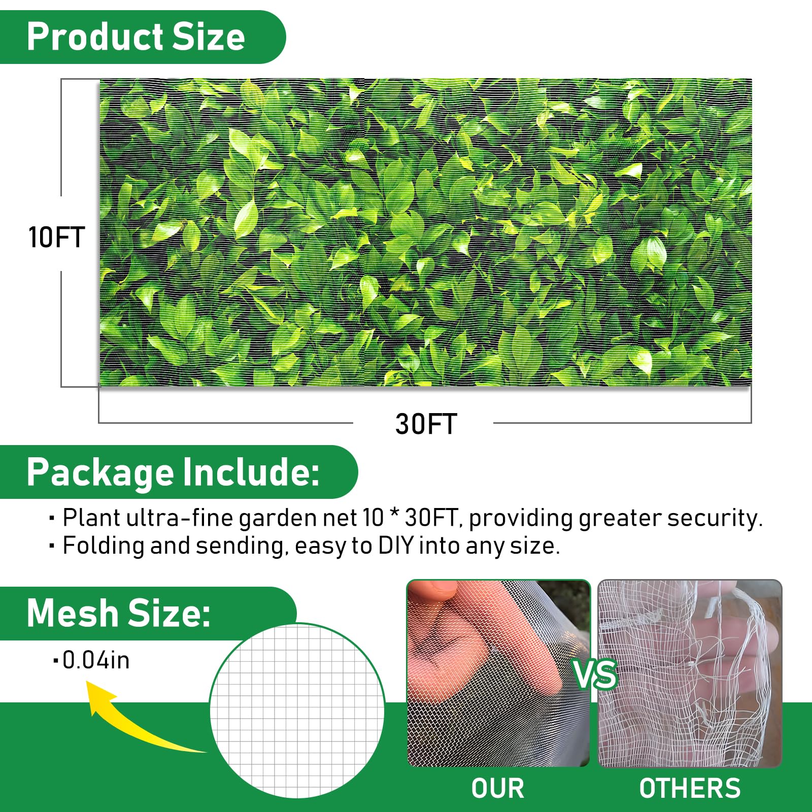 • 👍**Transform Your Garden into a Thriving Sanctuary with Our Premium Garden Mesh**:Are you ready to elevate your gardening experience and ensure your plants reach their full potential? Our garden mesh is designed to be the guardian of your green spaces, offering extensive coverage and superior protection for your cherished plants, whether in vast pastures, fertile orchards, or elevated bed coverings.