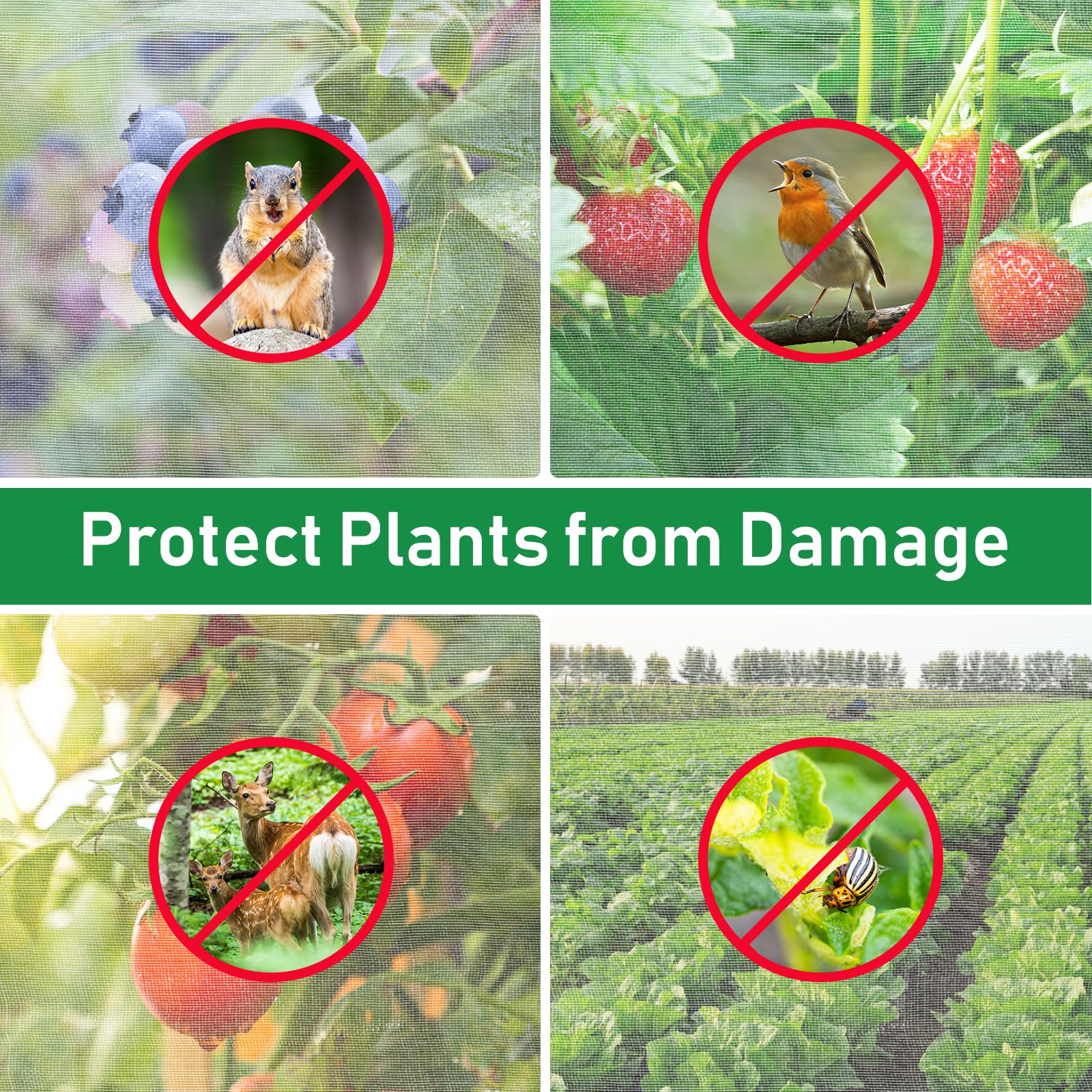 • 🥬**Peaceful Shield for Your Crops**:YNERHAI netting provides a protective shield for a variety of crops, including cabbage, cauliflower, blueberries, and strawberries. It creates a safe haven for your plants, preventing unwanted visitors from feasting on your seeds or tender fruits. This allows your garden to fully unleash its potential, ensuring a bountiful harvest.