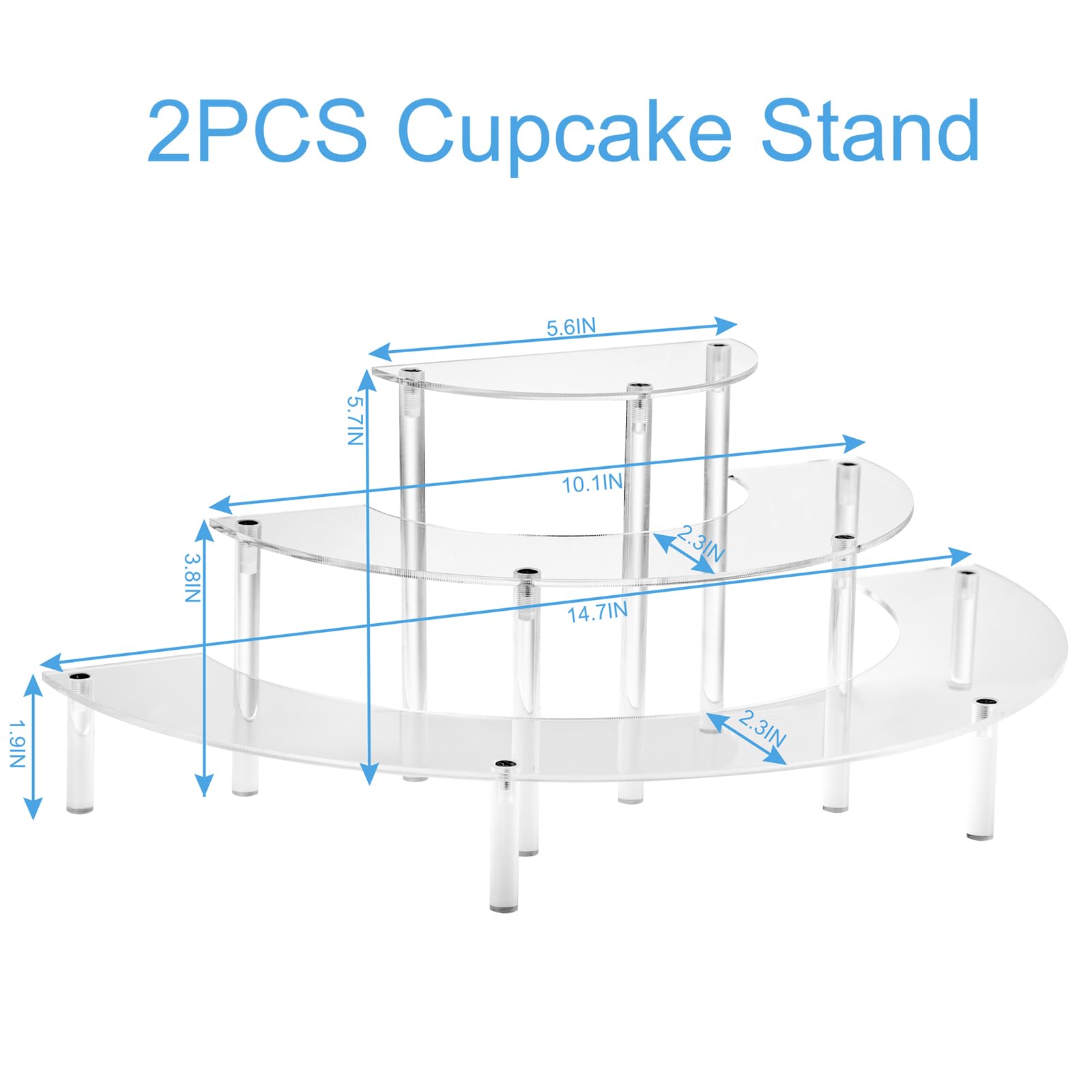 • Arbitrary Combination: SIZE: 14.8 X 7.4 X 5.7 IN. Arrange cupcake stand together in a full circle, or individually in semi-circles. Acrylic half-moon cupcake stand 3 tier features 3 layers that provides enough space to cologne perfume, cosmetic, skincare lotion, Amiibo Funko POP Figure, dessert, cupcake risers, collectibles and etc