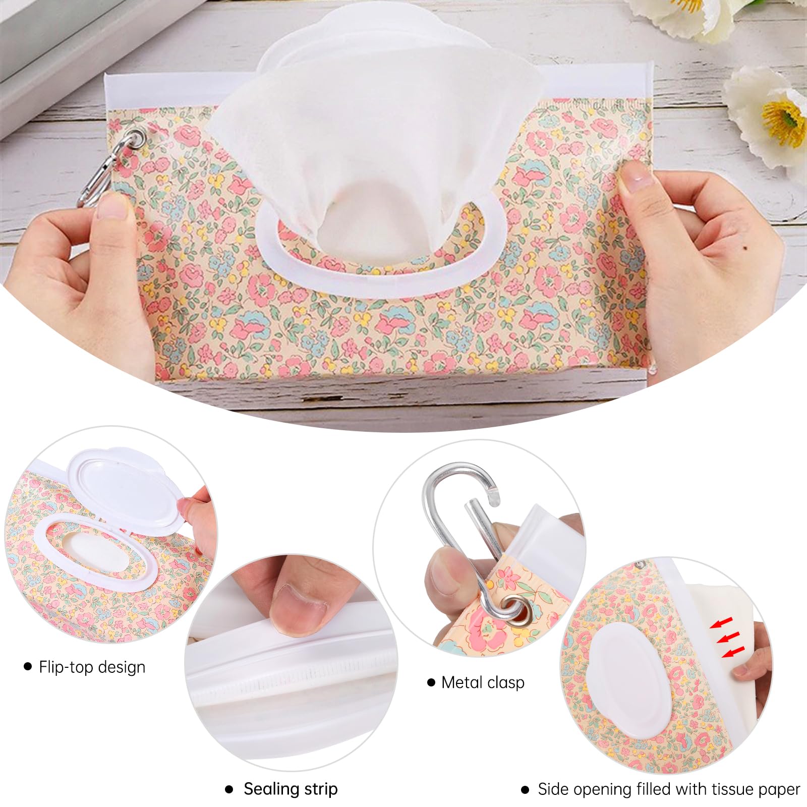 • Pattern: One package contains two travel wipes cases with beautiful floral patterns. Size: 9.85*6.7*0.39 inches, suitable for most wet wipes, toilet paper, facial tissue, etc. on the market