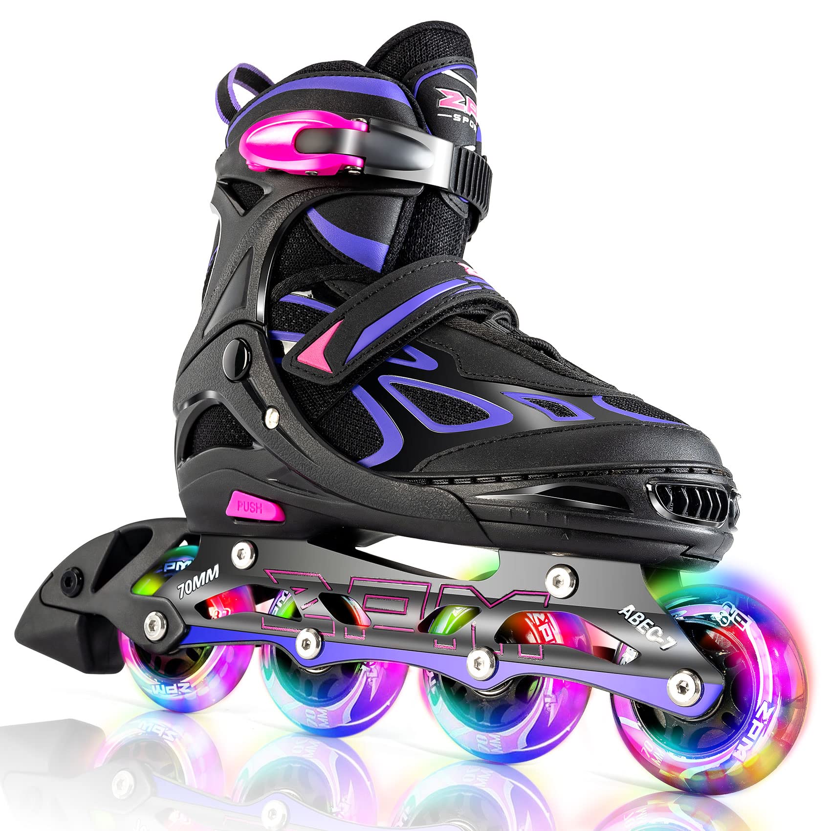 2pm Sports Vinal Girls Adjustable Inline Skates with Light up Wheels Beginner Skates Fun Illuminating Roller Skates for Kids Boys and Ladies - Violet Medium(1Y-4Y US)