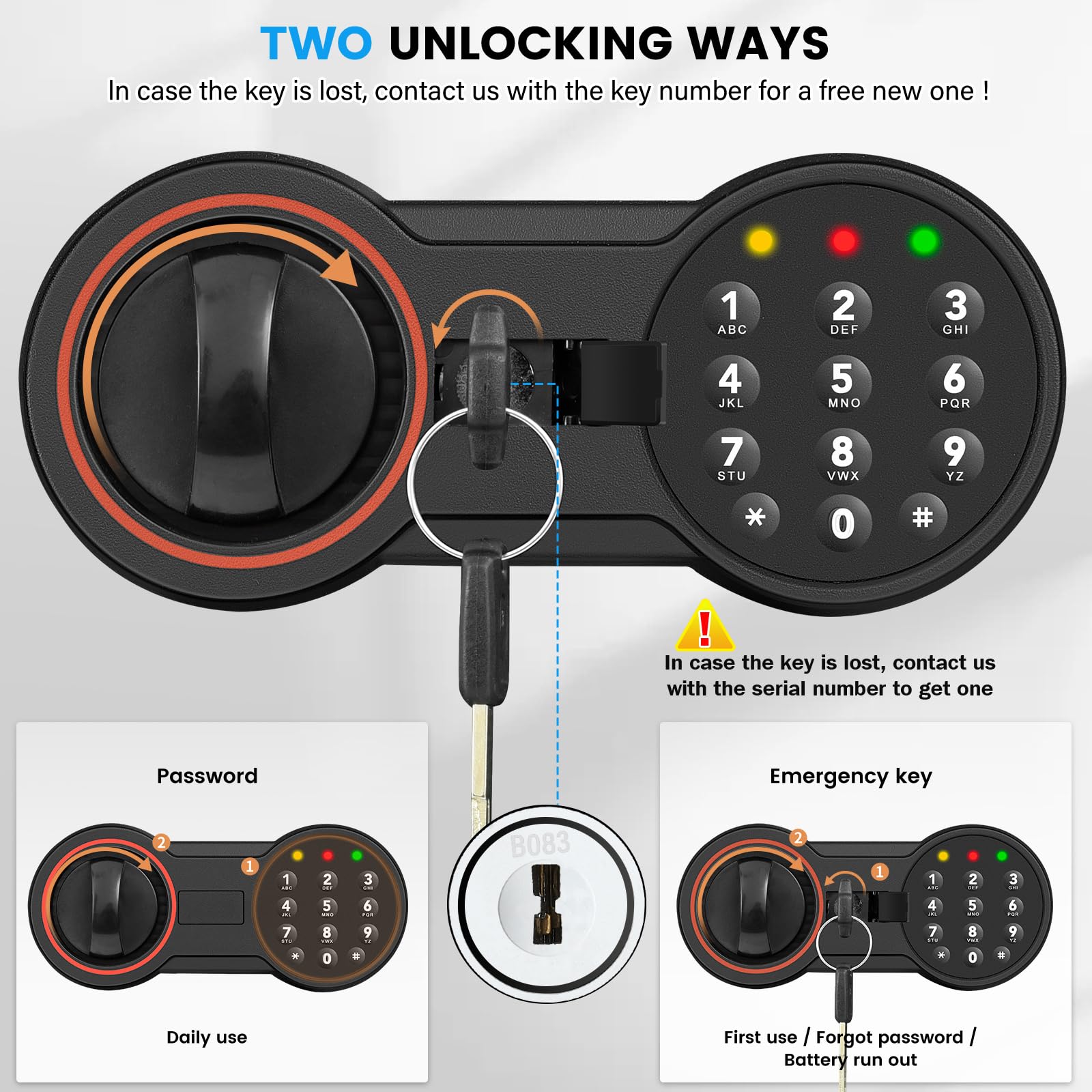 • LIFETIME WARRANTY: You will get one safe, two emergency keys, one emergency battery box, four expansion screws. We will provide you with 24-hour online service and 90-day return or exchange service. Your satisfaction is our aim
