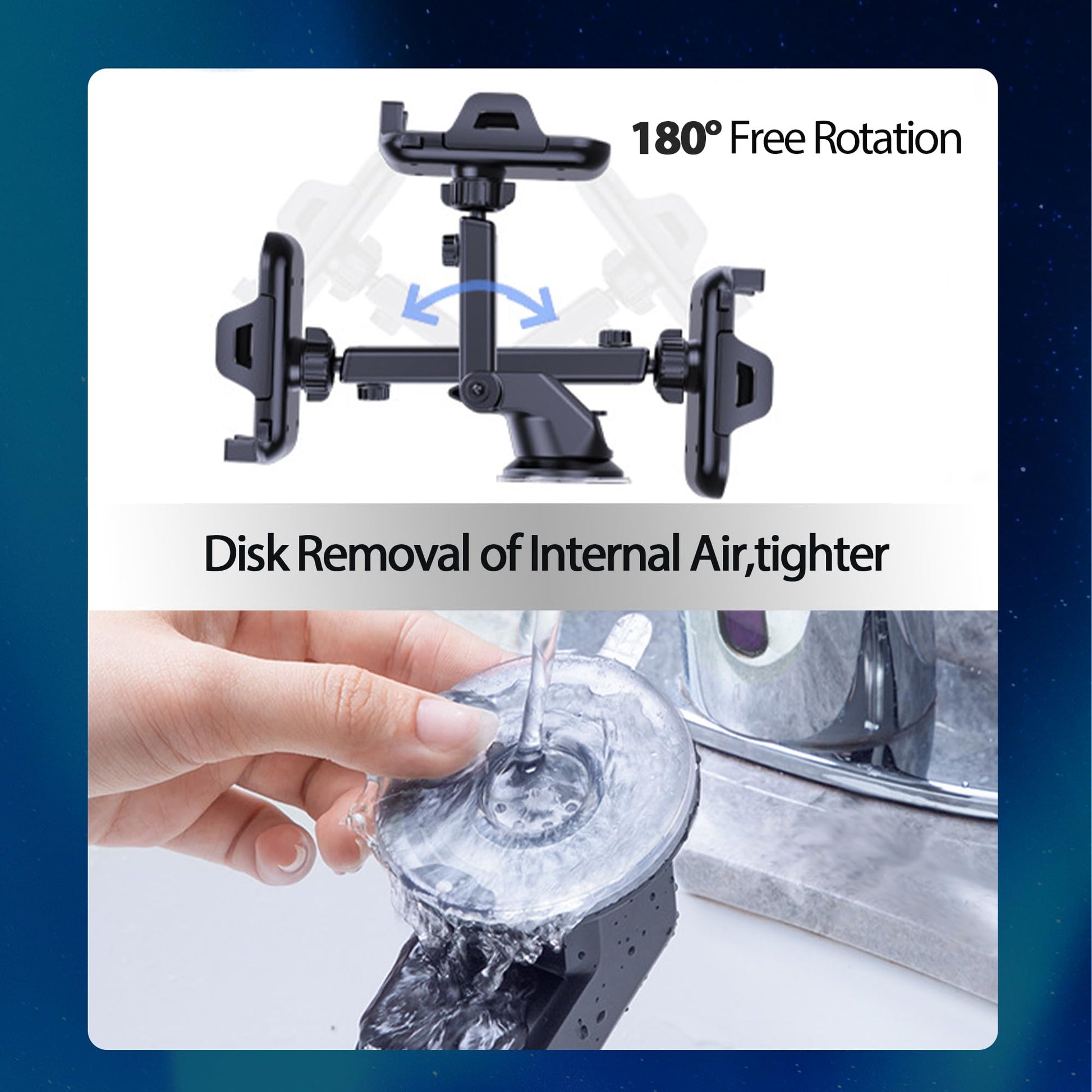 • 360° ball joint and telescopic arm (4.43' to 7.31') allow you to adjust the phone to any angle. This cell phone holder for car allows you to use your phone in portrait and landscape mode. Whether you're navigating or charging, the phone holder provides a safer driving experience