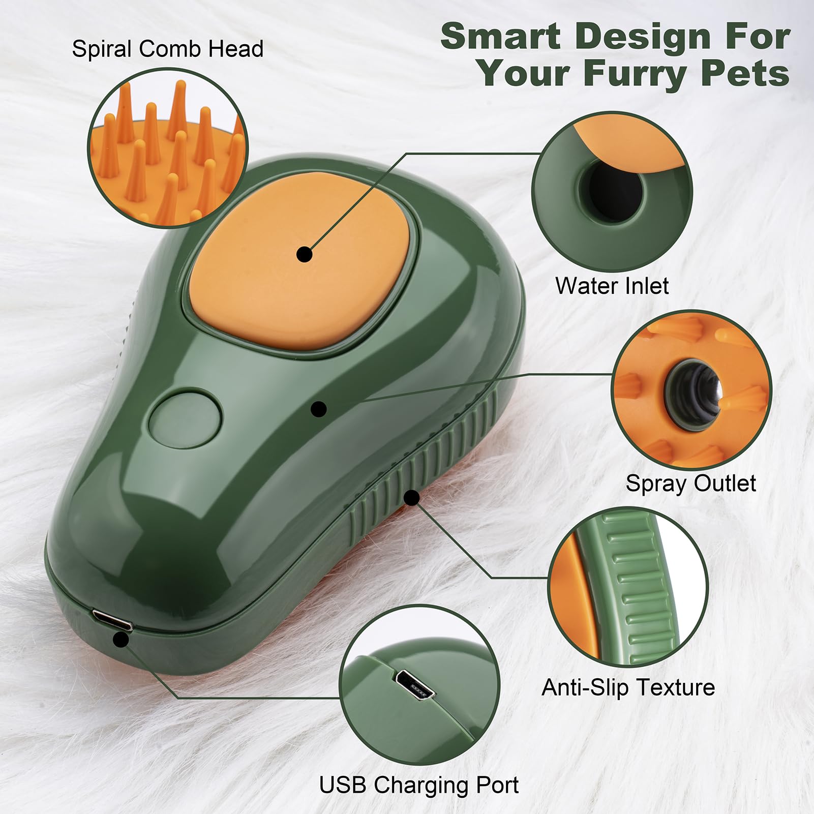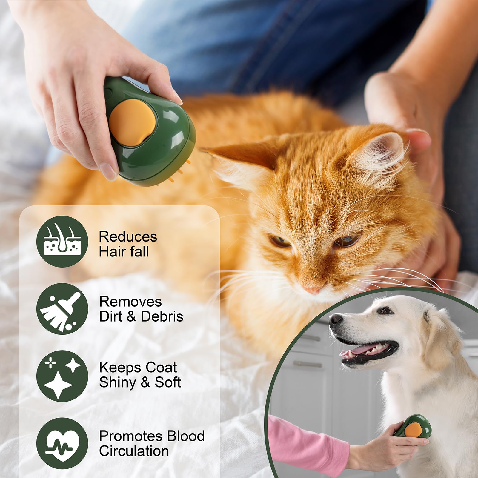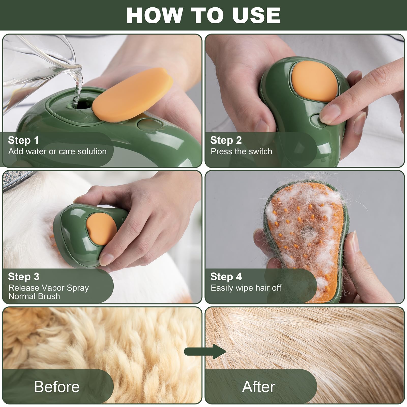 3-in-1 Steam Brush for Cat and Dog Deshedding - Portable Pet Hair Removal Tool for Indoor Shedding, Grooming Supplies