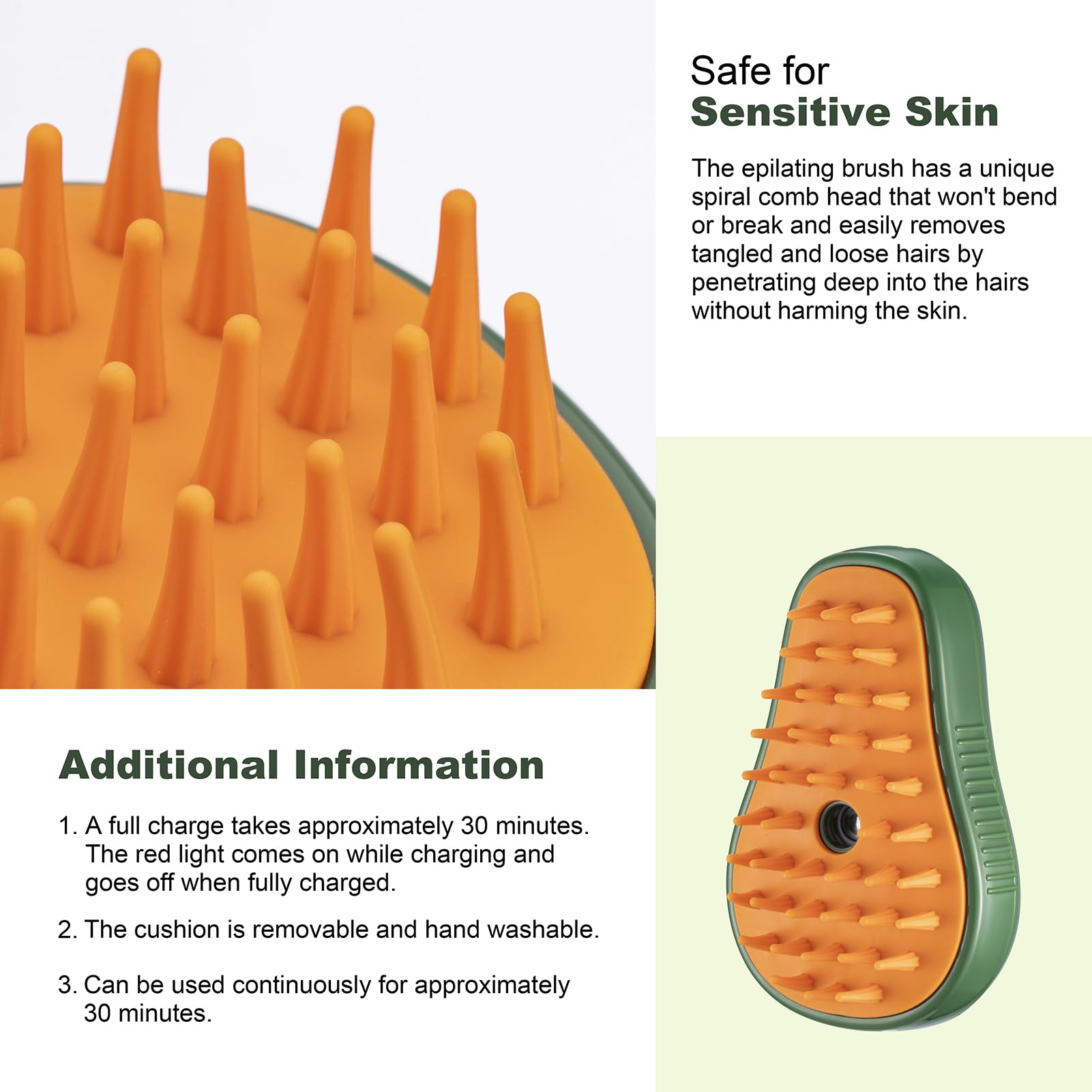 • Tips: Please use a 5V output power charging head to charge this cat steam brush for better performance and stability of the product. Cleaning the cat hair in time to prevent it from blocking the water outlet and affecting its use. If you are not 100% satisfied, contact us directly and we will provide you with a No-Questions-Asked replacement or refund