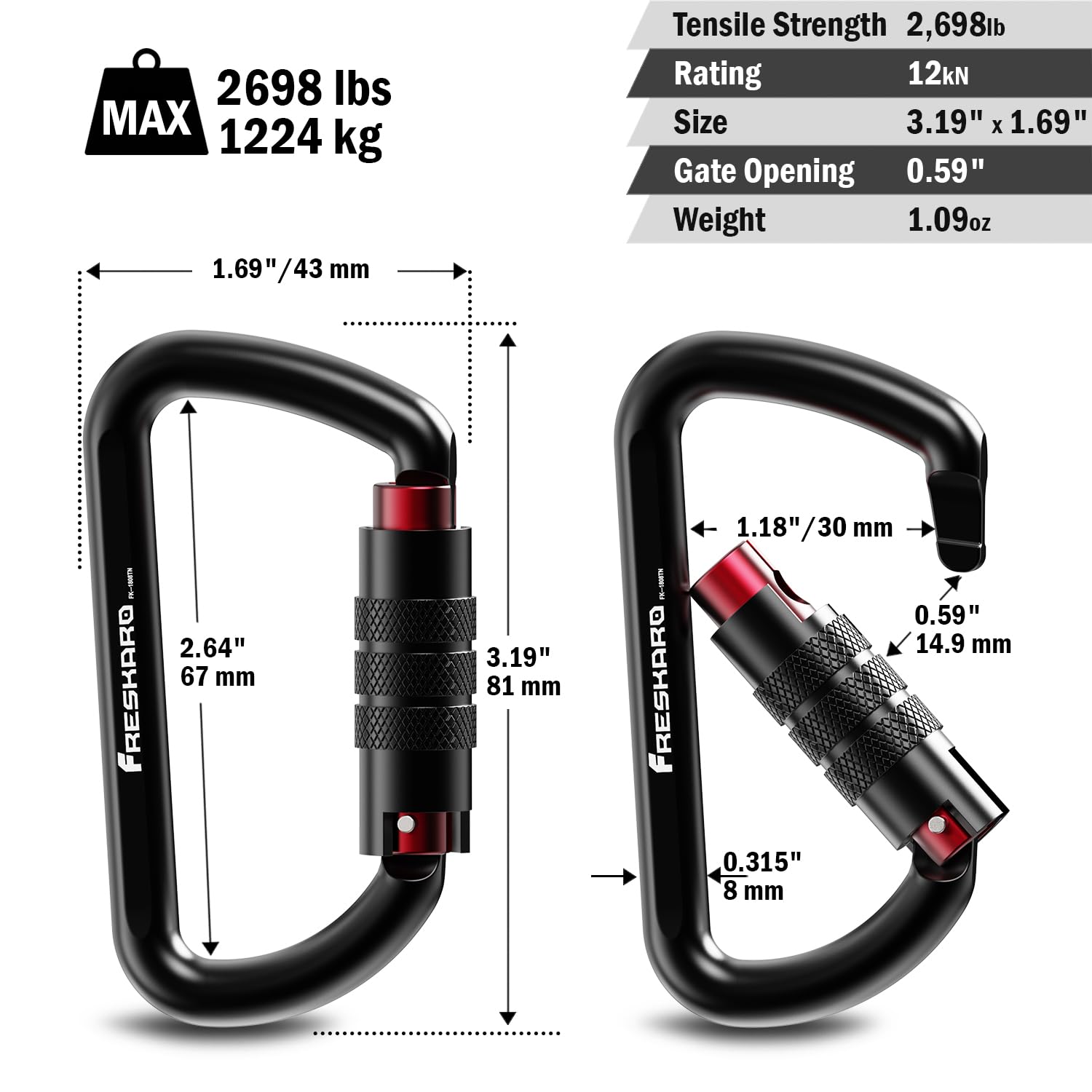 • 【STRONG CARABINER】- Major axis strength 12KN (2698lbs), it's very safety to hang heavy stuff such as hammock, hammock chair, swing, aerial yoga, punching bags etc