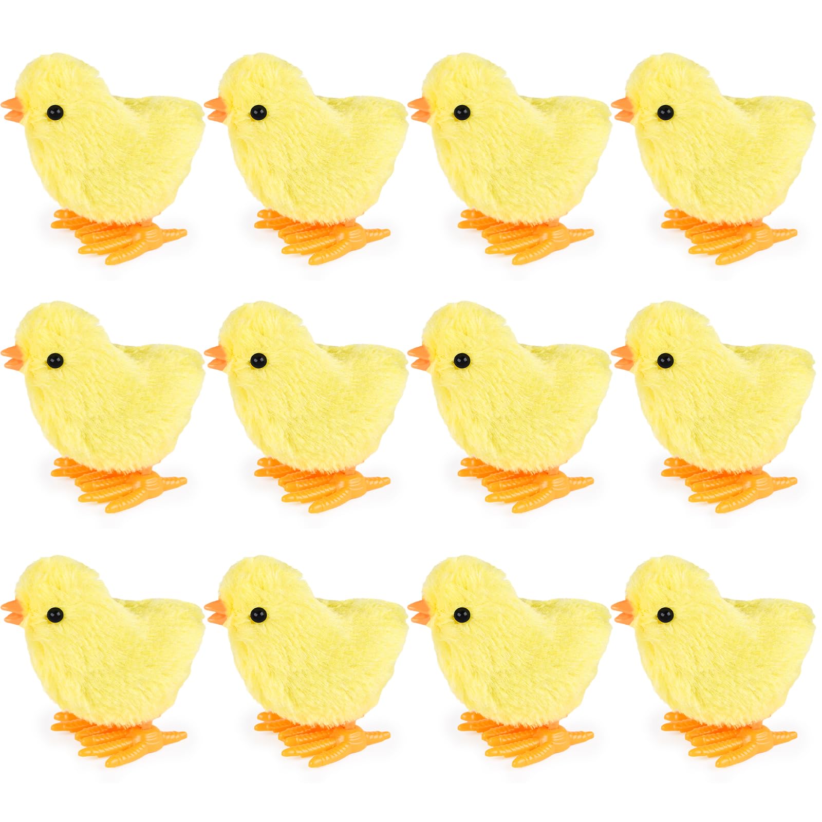 3 otters 12PCS Wind Up Toys, Wind-Up Jumping Cute Chicken Plush Chicks Toy for Kids Goodie Bags Treasure Chest Party Favors Gifts