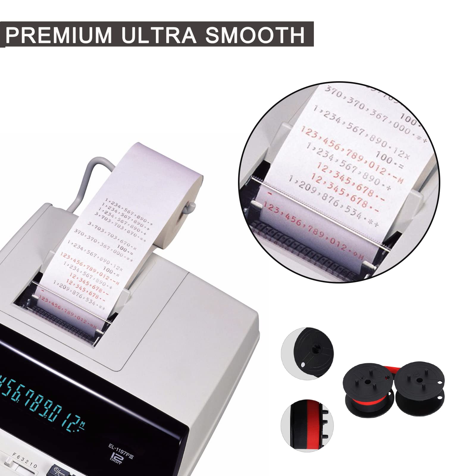 Details: BOEDCN 3 Pack 11216 Compatible Ribbon Replacement for Porelon 11216 Universal Twin Spool Calculator Ribbon 11210 GR24 use with Sharp el-1197piii Adding Machine Ribbons Universal Nukote BR80c - B/R Twin spool black and red calculator ribbons provides vivid and consistent black and red color in addition to exceptional light fastness and durable impressions.