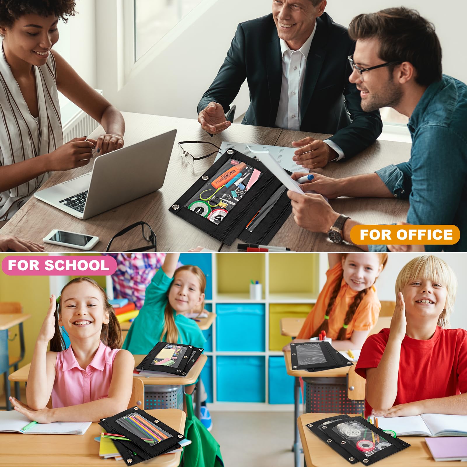 • Great 3-Ring Pencil Pouch - The bulk pencil pouches can help teachers or office staff who need to deal with a large number of documents to better classify. The fabric pencil pouches have enough space to store your office. Easy to see what is inside with the clear window allows you to see what's inside, and helps you to find items easily.