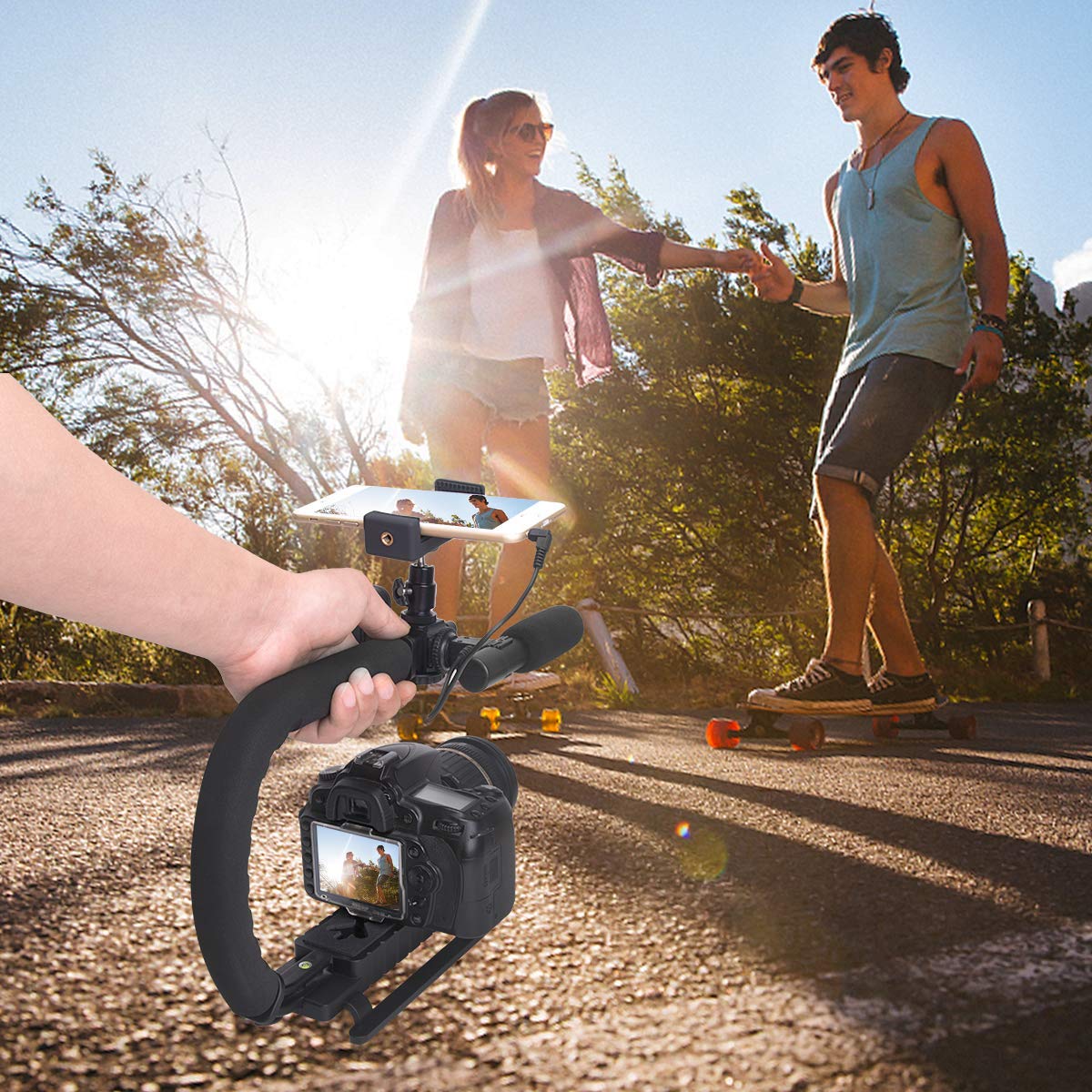 • ★【Ergonomic Design】The detachable handle can be turned into a C-TYPE low-position-shooting stabilizer to reduce lumbar muscle strain, and the comfortable handle increases shooting when held with both hands Stability, easier shooting, suitable for long work.