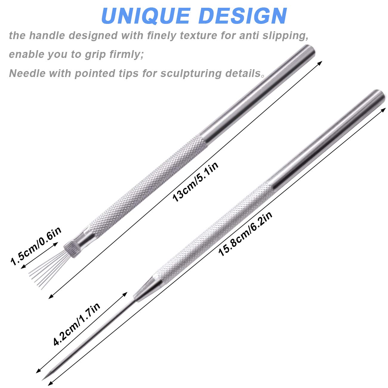Feather Wire Texture Detail Tools: Total Length is 13 cm/ 5.1 inch. Needle part is 1.5cm/ 0.6 inch long. Multiple wire texture tool allow you to make many special effect. The wire texture tool also allows to make multiple fine lines for joining clay with one stroke.
