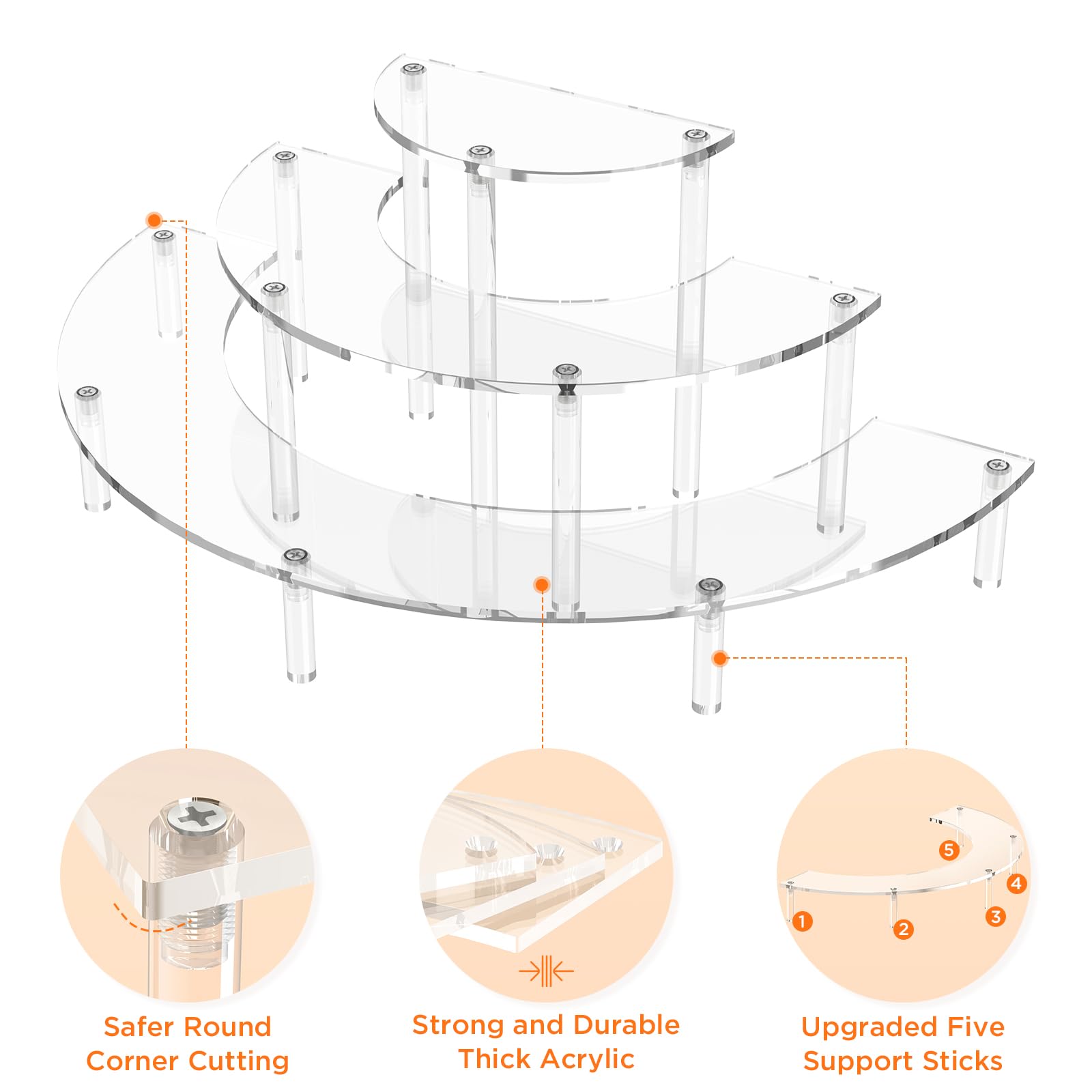 3 Tier Acrylic Display Risers 2 Pack, Half Moon Cupcake Stand, Clear Perfume Organizer, Dessert Stand for Display, Clear Display Stand for Food, Cupcake, Perfume, Collections