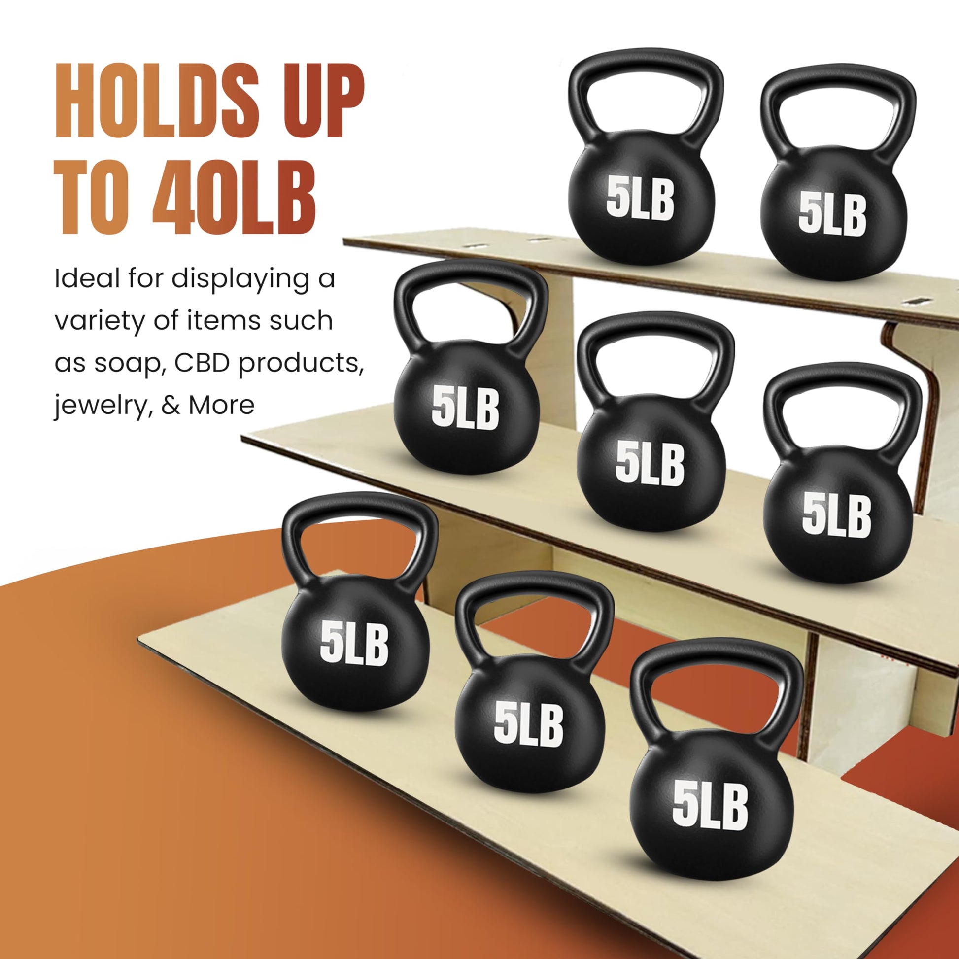 • Versatile Presentation: From soap displays and candles to tumblers, cups, and plants, this display stand accommodates a wide variety of items, making it a versatile choice for showcasing your products.