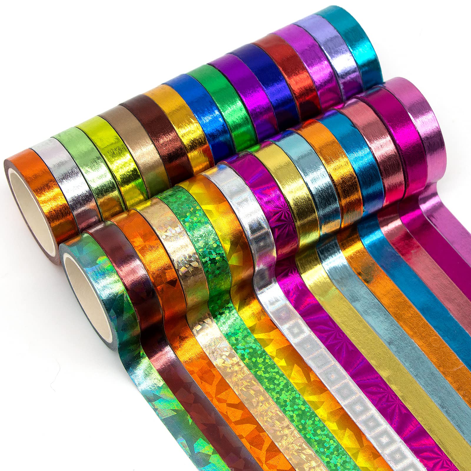 • 30 ROLLS OF FOIL WASHI TAPE - Give all your craft and DIY projects the star treatment! 30 rolls of strong foil paper tape, each with an intensely vivid shine. Make your cell phone cases, storage boxes, and picture frames twinkle, or create sparkling wall art in on-trend metallics. W:8mm x L:4m