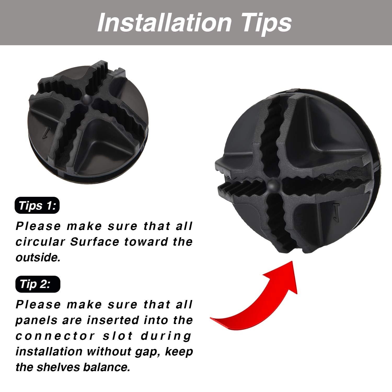• Convenient to use: inset all panels into the connector and make sure all the circular surface toward outside, keep the shelves balance after installation