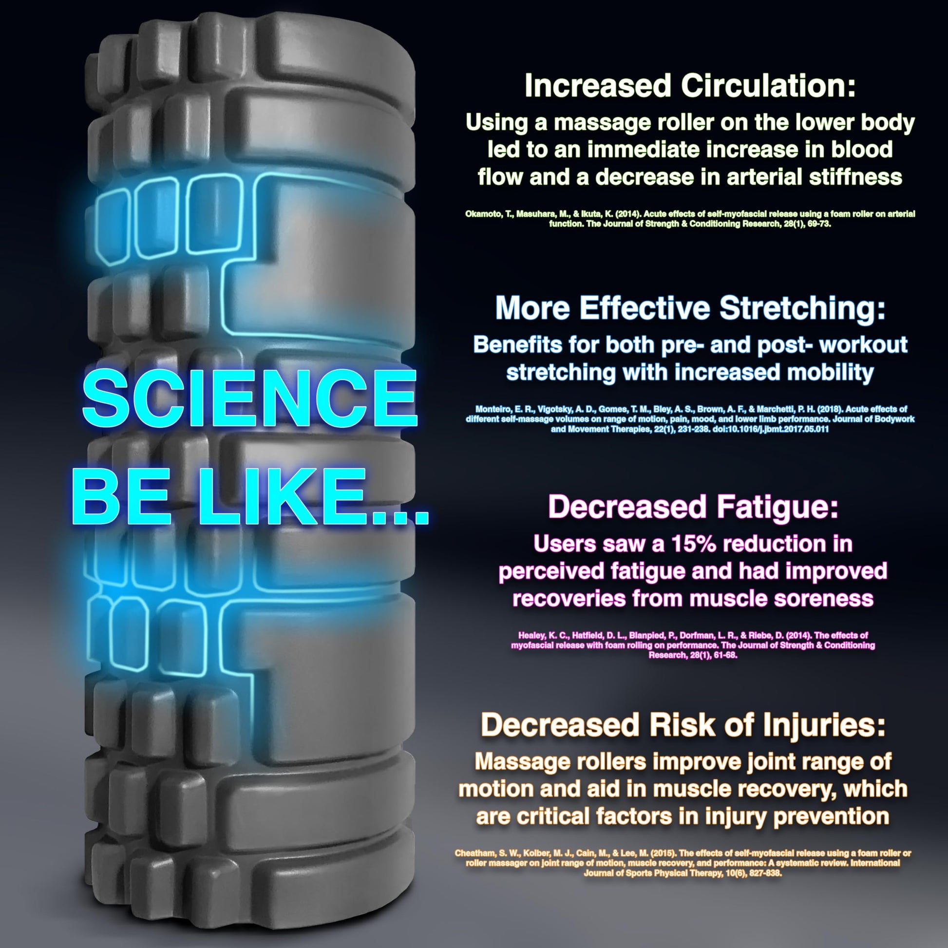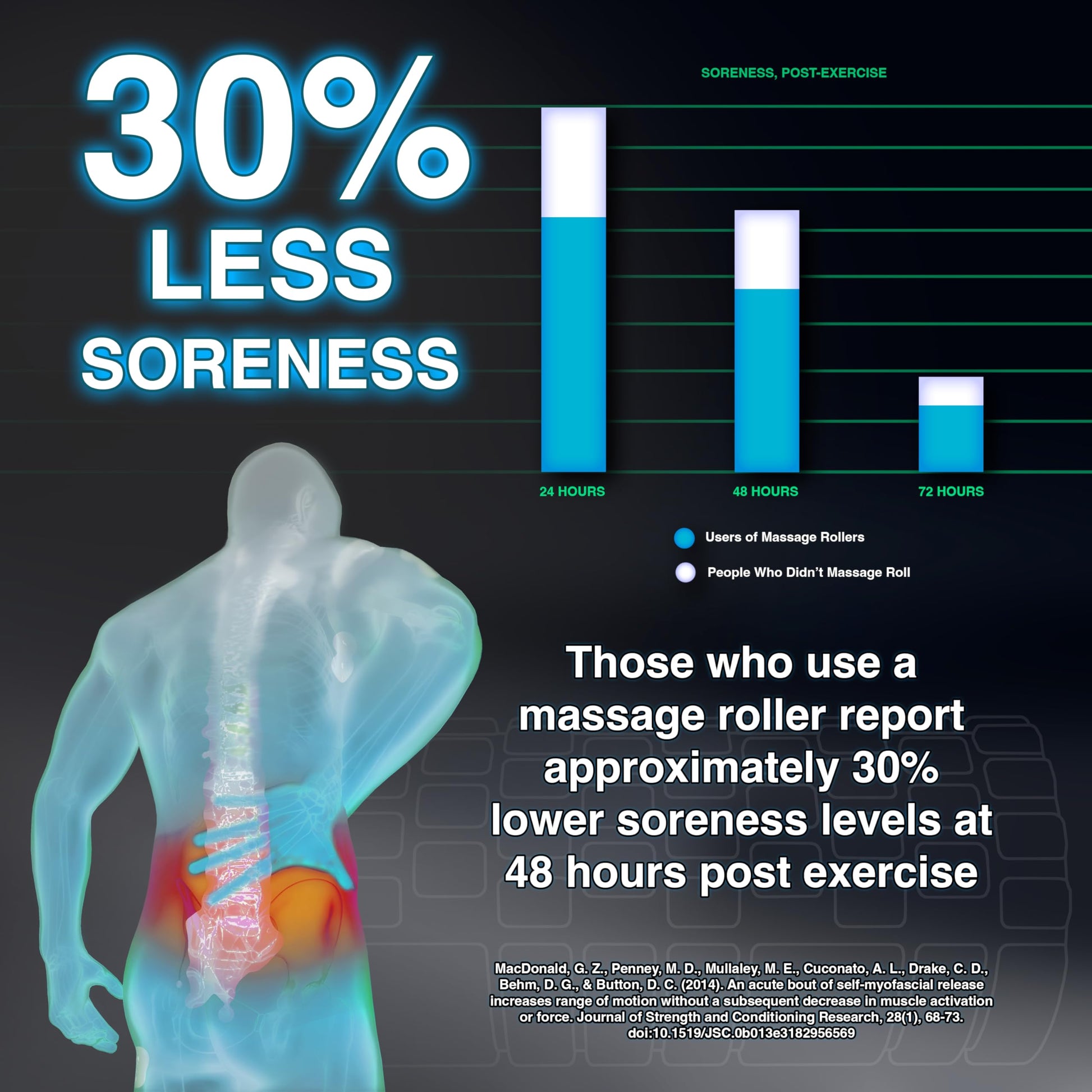 • QUICK AND EFFECTIVE: Foam rolling for just 20 minutes after exercise, and again at 24 and 48 hours has been clinically proven to reduce recovery time by 20%, increase flexibility by 10%, and reduce soreness by as much as 30%. They have also been shown to decrease the risk of injuries in the first place