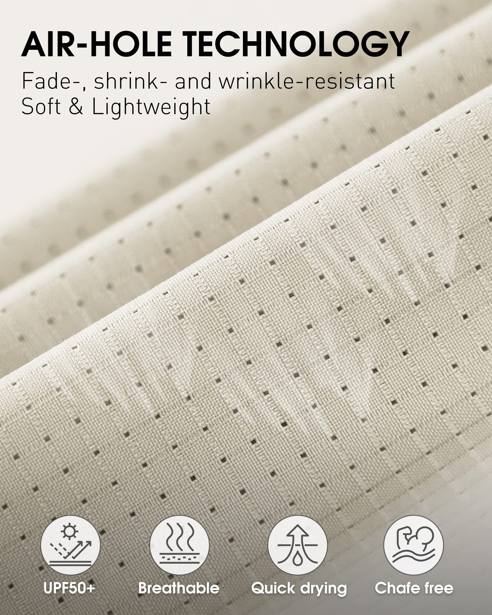 • 【Breathable & Quick Dry】 Unique high-tech air vent fabric keeps the breeze flowing in and the heat flowing out, delivers excellent moisture-wicking and quick-dry abilities to help all-day cooling.