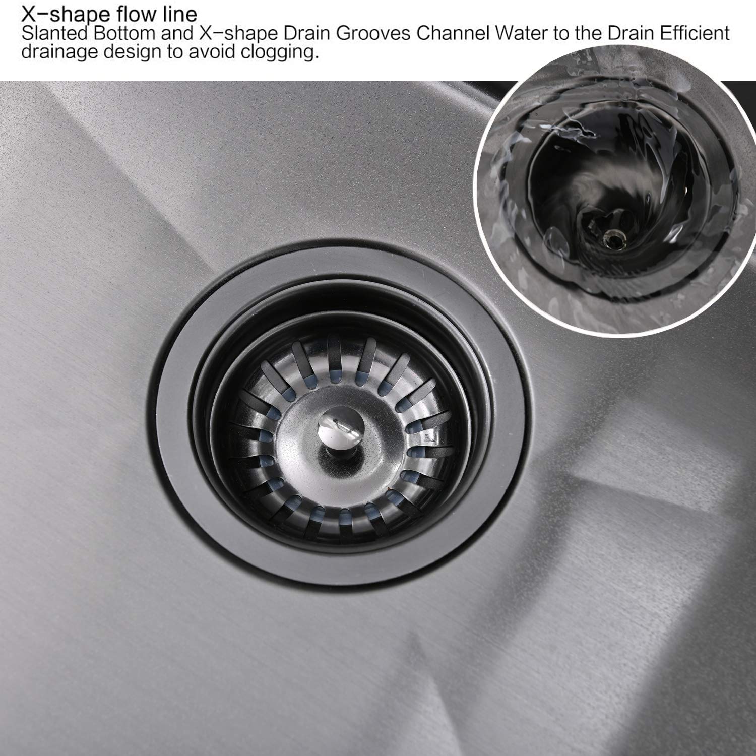 • 【16-Gauge Stainless Steel & T304 Construction】: Drop In Kitchen Sink Black This high class T-304 grade stainless steel sinks are made with heavy 16-gauge stainless steel, Outer layer spraying with nano PVD technology, which is with high strength, wear resistance, heat dissipation, easy to clean and use long-lasting.