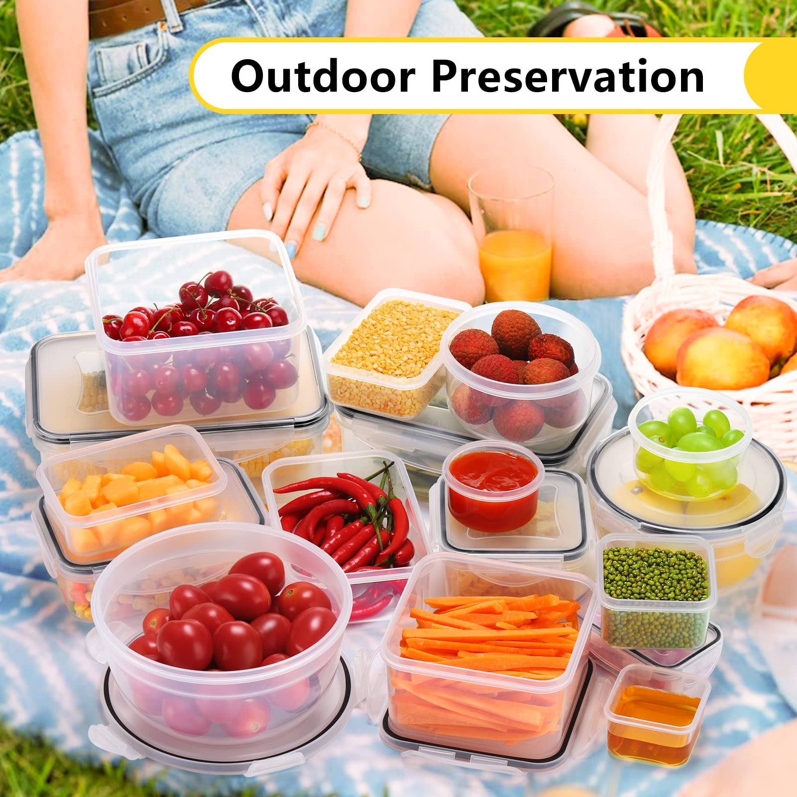 • Multifunctional - The large containers can be used to store fruits, vegetables, salads, grains, meat, meal, pasta, soup, candies, etc., and the small containers can be used to store salt, sugar, ketchup, hot sauce, pepper sauce and other seasonings. Meet all the family's food storage needs. Also suitable for outdoor, picnic, barbecue and other scenes