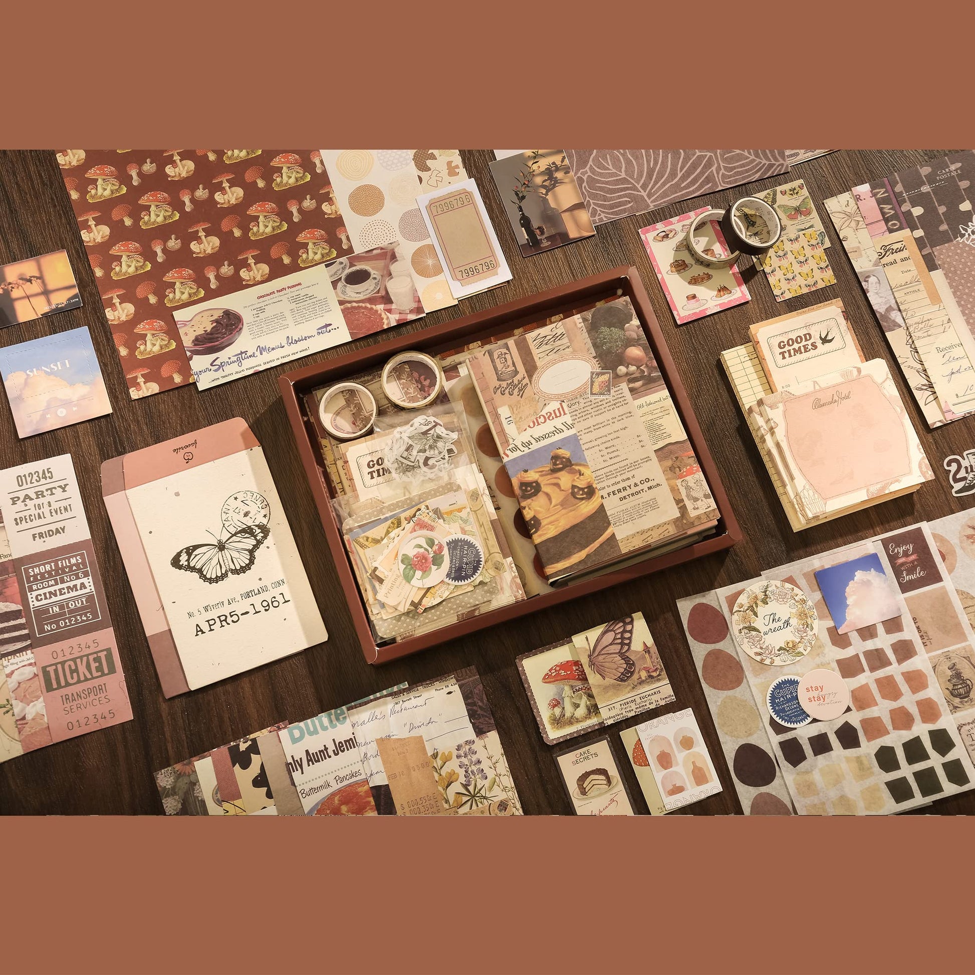 • This scrapbook supplies comes with assorted vintage paper stickers in various designs, their classic prints include botanical, butterfly, mushrooms, flowers, trees, dinosaurs, letter sheet and so on, which look very classic and sunset red aesthetic scrapbook journal kit, not easy to go out of date, bringing you enjoyment. These different series and sufficient quantity washi paper stickers can meet your daily use and replacement.
