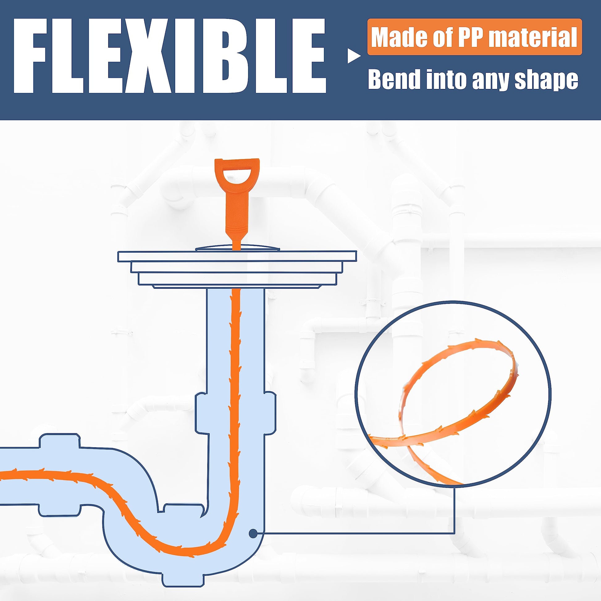 • 【BENDABLE & FLEXIBLE】 The drain snakes is made of PP material, which is highly flexible. The metal clog remover and drain overflow brushes can be bent any shape to adapt the sewer and pull out the clog without damaging the pipes.