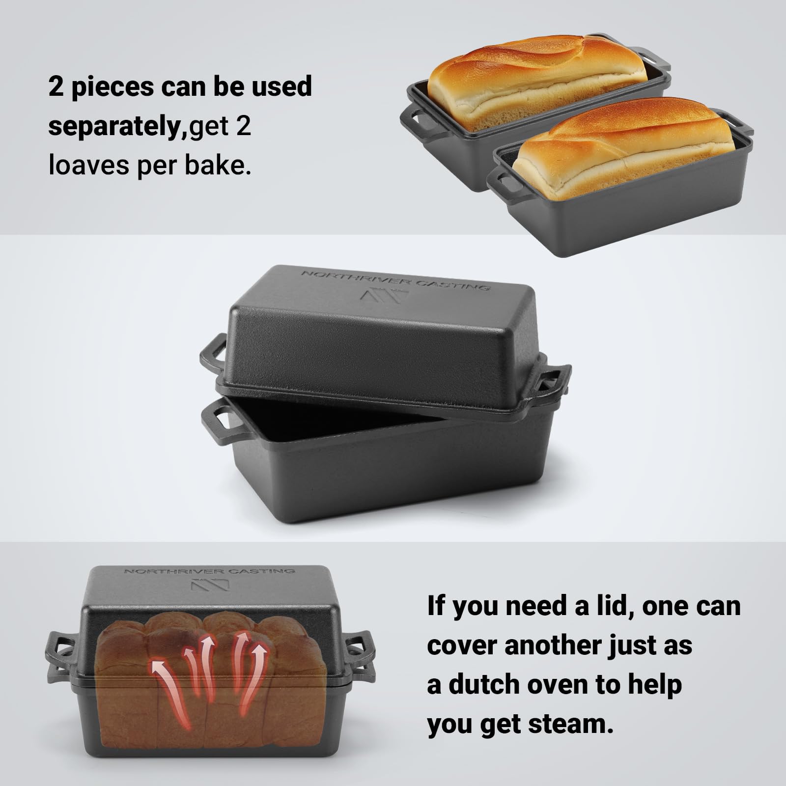 • 【BASIC CAST IRON BREAD PANS】: Northriver Casting bread loaf pan set is fully made of high grade cast iron, can delivers the proper heat to bake a perfect homemade sourdough bread or meatloaf. This loaf pans for baking bread 9x5 is suitable for all kitchen cooktops, oven, electric stove, blackstone, induction cooktops or campfire.