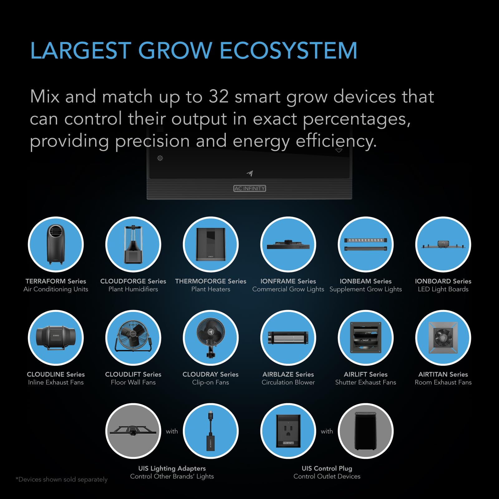 • Revolutionary AI-powered controller that actively learns about its environment, automating equipment and providing insights to achieve the perfect grow.