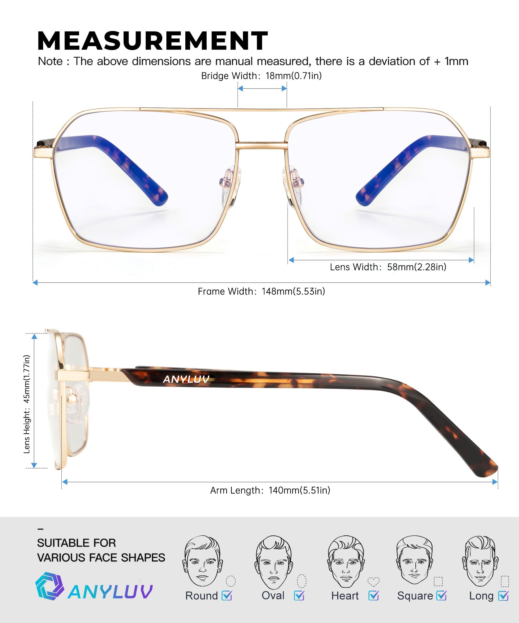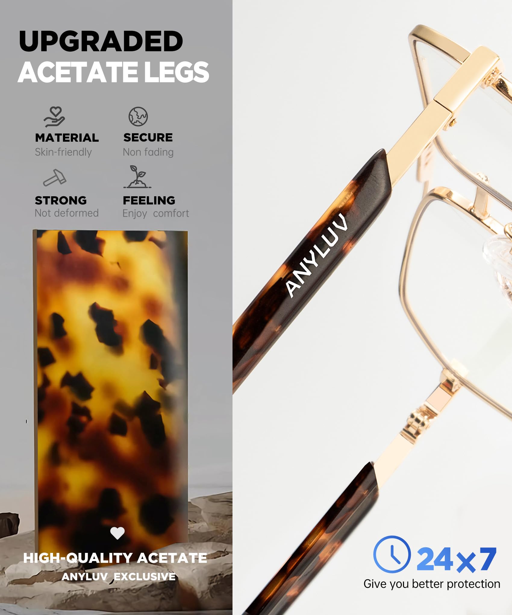 • Trendy Blue Light Glasses: Designed with square slim frame and ANYLUV logo decor temple, very exquisite and fashion style. These anti blue light glasses help show a sophisticated look that complement any outfits, whether you're working or casual daily life