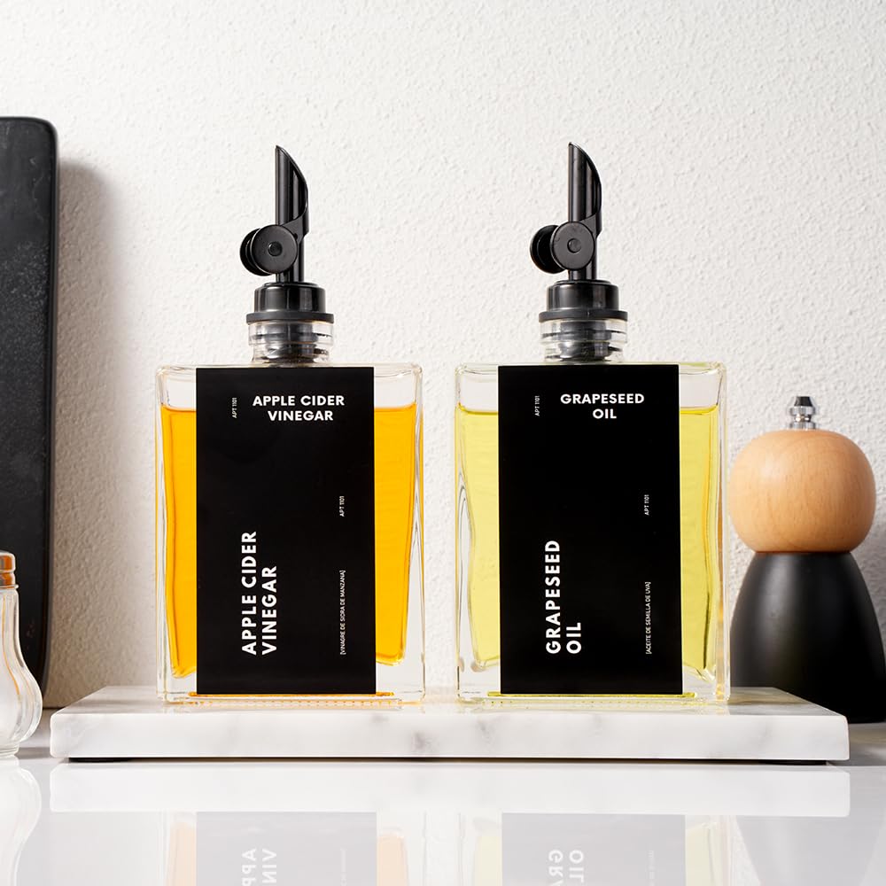 • Premium Quality: Crafted from high-quality glass, this olive oil dispenser bottle set offers durability and style for your kitchen.