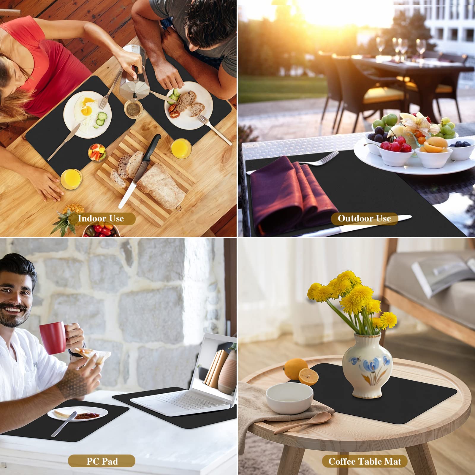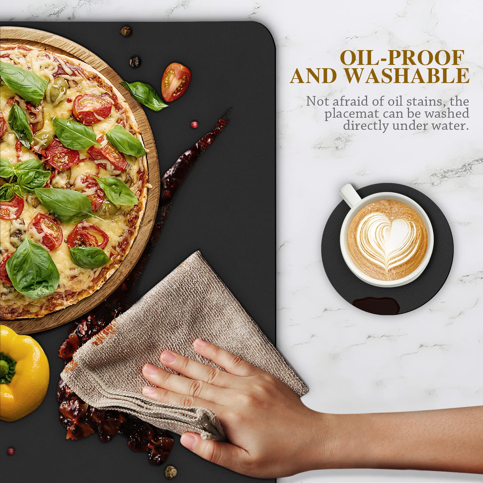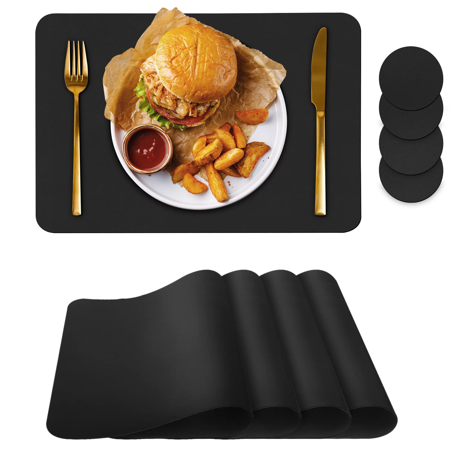 Bacgnyer Placemats Set of 4, Placemat with Coasters Heat Stain Scratch Resistant Non-Slip Waterproof Oil-Proof Washable Wipeable Outdoor Indoor for Dining Patio Table Kitchen Decor and Kids (Black 4)