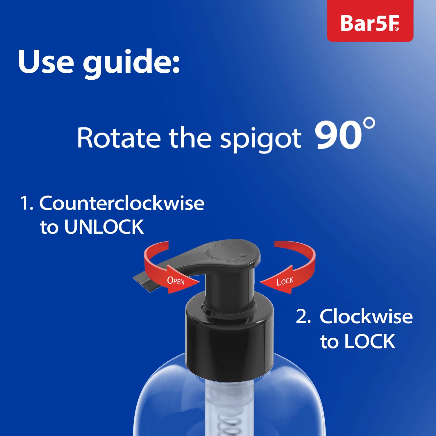 Bar5F Plastic Bottles with Pump Dispenser, 8 oz | Leak Proof, Empty, Clear Refillable, BPA Free for Body Wash, Moisturizer, Face Cream, Liquid Soap | Black & White Pumping Caps | Set of 2