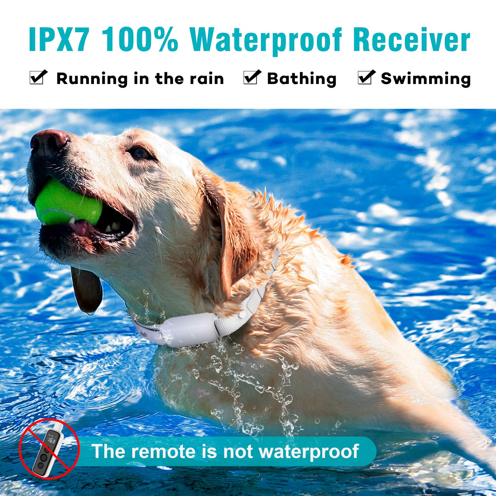 • Rechargeable and IPX7 Waterproof: Our electronic collar is rechargeable with a built-in lithium battery. You can charge the shock collar with your phone adapter, which is very convenient. The collar receiver is IPX7 waterproof, offering you maximum flexibility during the outdoor activities