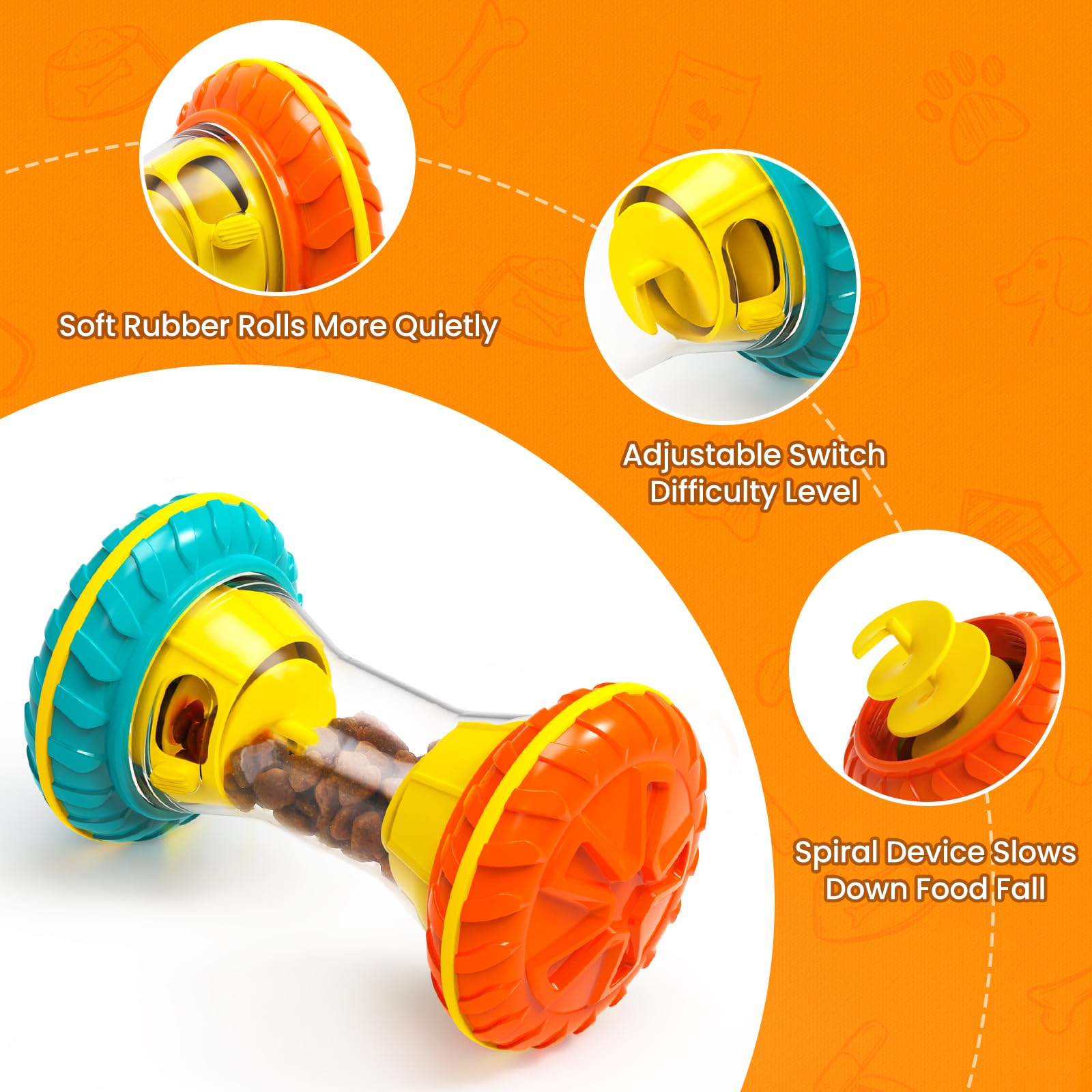 • Improve Intelligence & IQ Training: Dog treat toy is an interactive chase toy that combines puzzles and treat dispensing, pets learn the process of rolling the dog treat puzzle to make treats fall and get treats, which helps to improve intelligence and stimulate the brain, Mental stimulation for dogs will relieve anxiety and reduce boredom, best dog toys to keep them busy for hours. Our dog food puzzle feeders, like other interactive dog toys for boredom are best played under supervision
