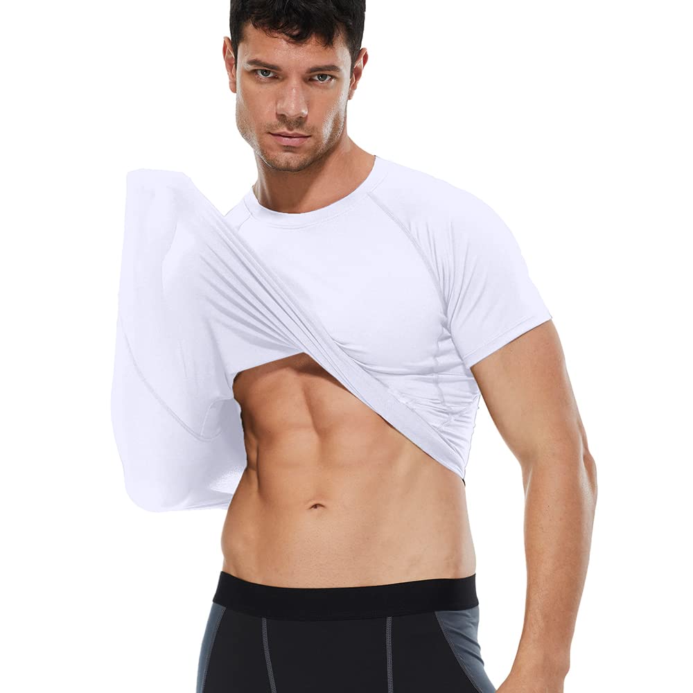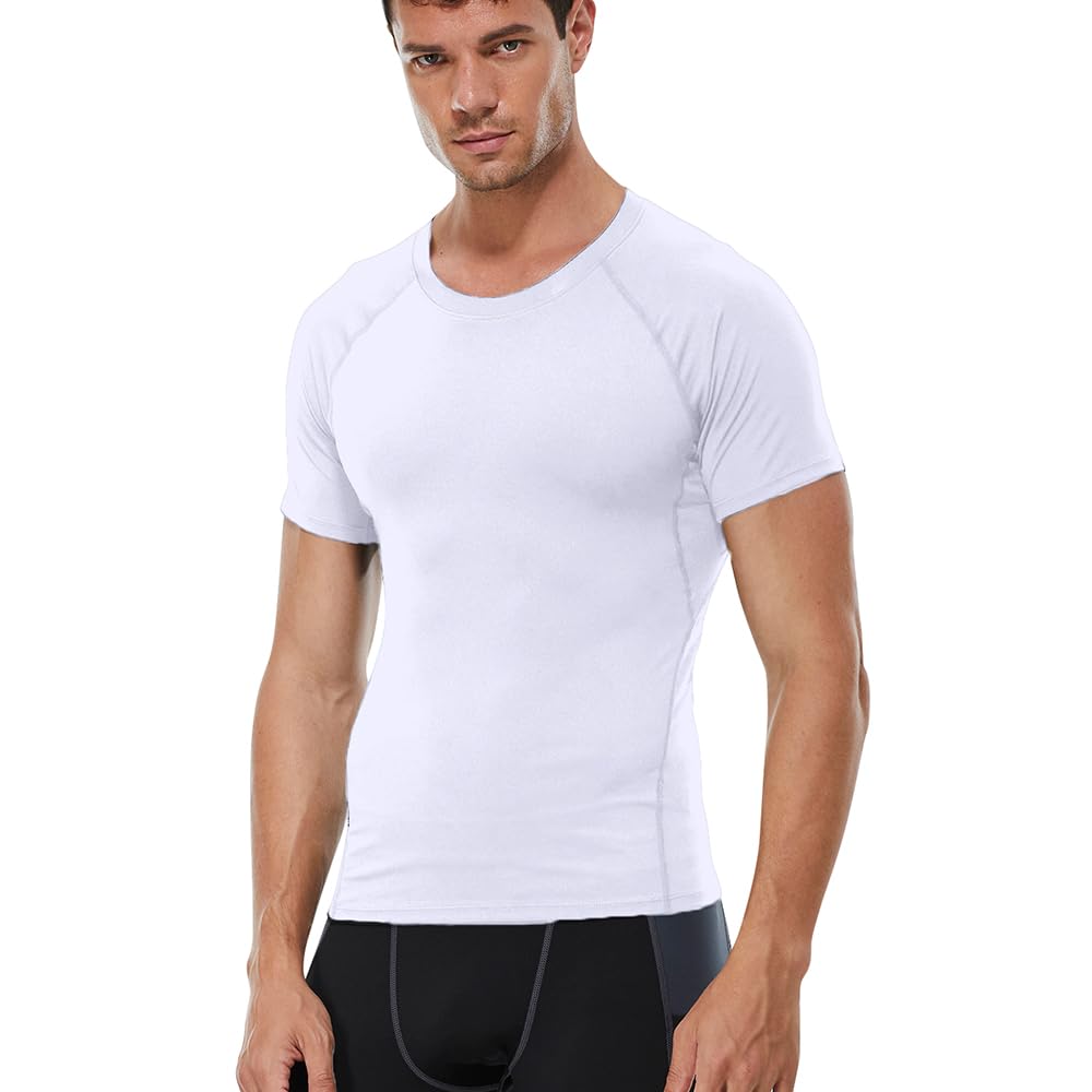 CARGFM Compression Shirt Men, Short Sleeve T-Shirt Cool Dry Tops Baselayer Undershirts for Workout Athletic Running Gym Football Basketball White