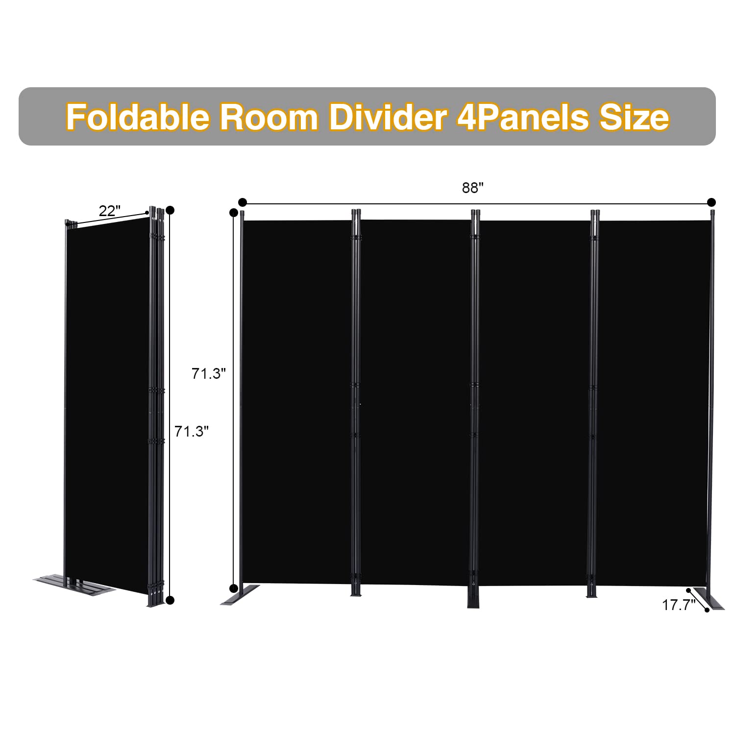 CHOSENM Room Divider, 4 Panel Folding Privacy Screens with Wider Feet, 6 Ft Portable Room Partition for Room Separator, Room Divider Panel 88" W X 71" H, Partition Room Dividers Freestanding,Black