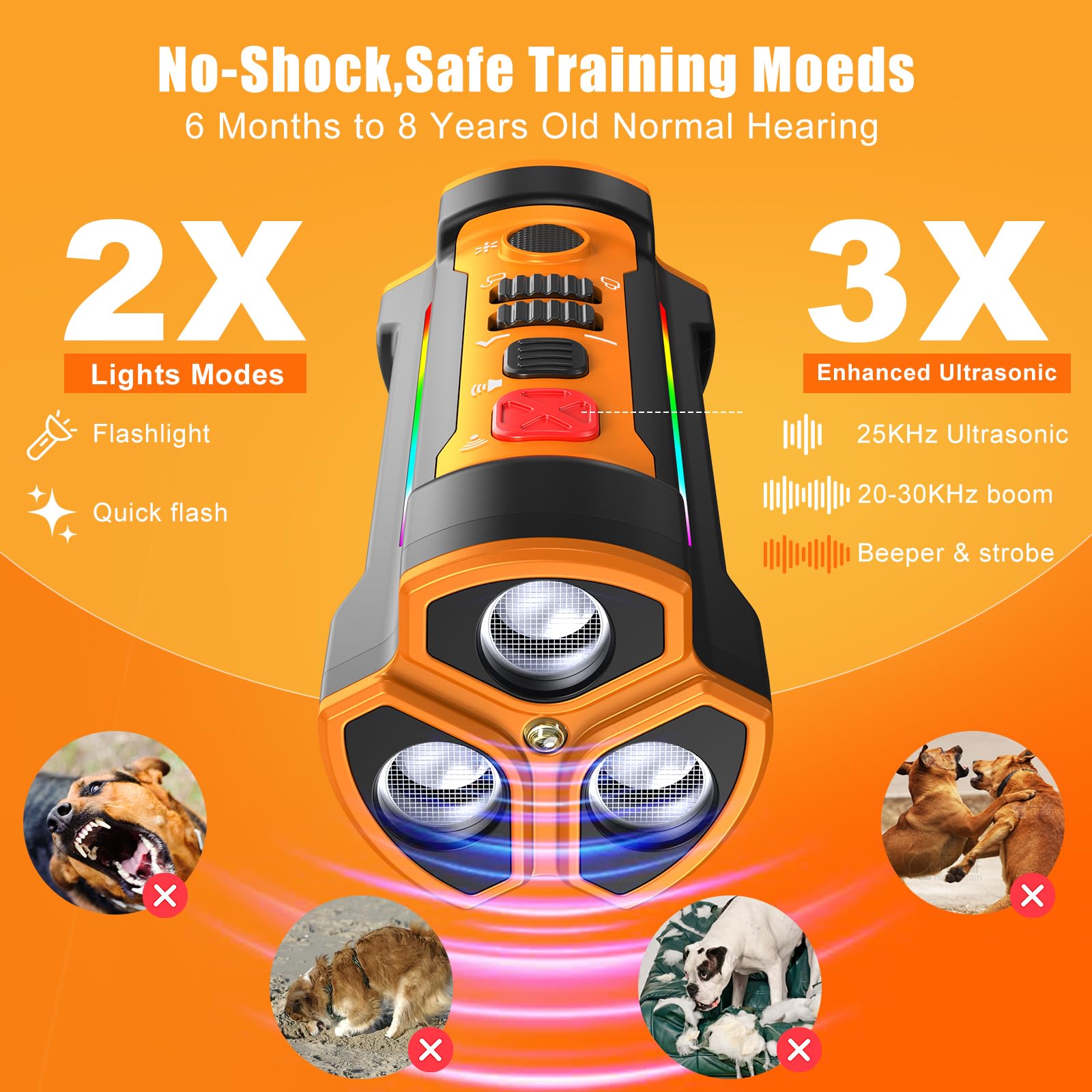 • (LED Flashlight Help You Walk Safely at Night): Anti Dog Barking Device is equipped with a powerful LED flashlight which ensures visibility, safety during nighttime walks or outdoor activities with your dog to keep your surroundings well for convenience.PARTY FLASHLIGHTS can add more fun to your party.