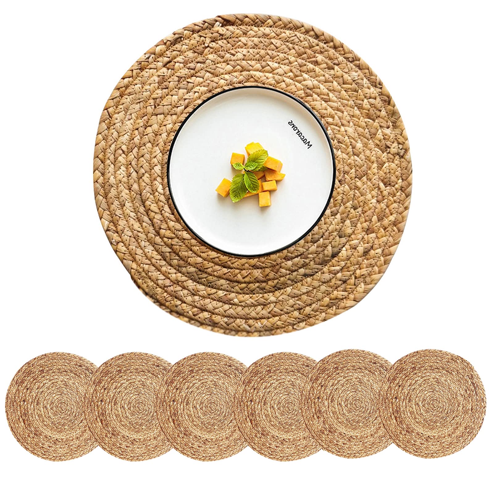 CY SISTERS Woven Placemats Round Placemats Set of 6, 13.5 Inch Wicker Placemat Circle Rattan Placemats Farmhouse Boho Braided Natural Water Hyacinth Place Mats for Indoor & Outdoor Table Decor