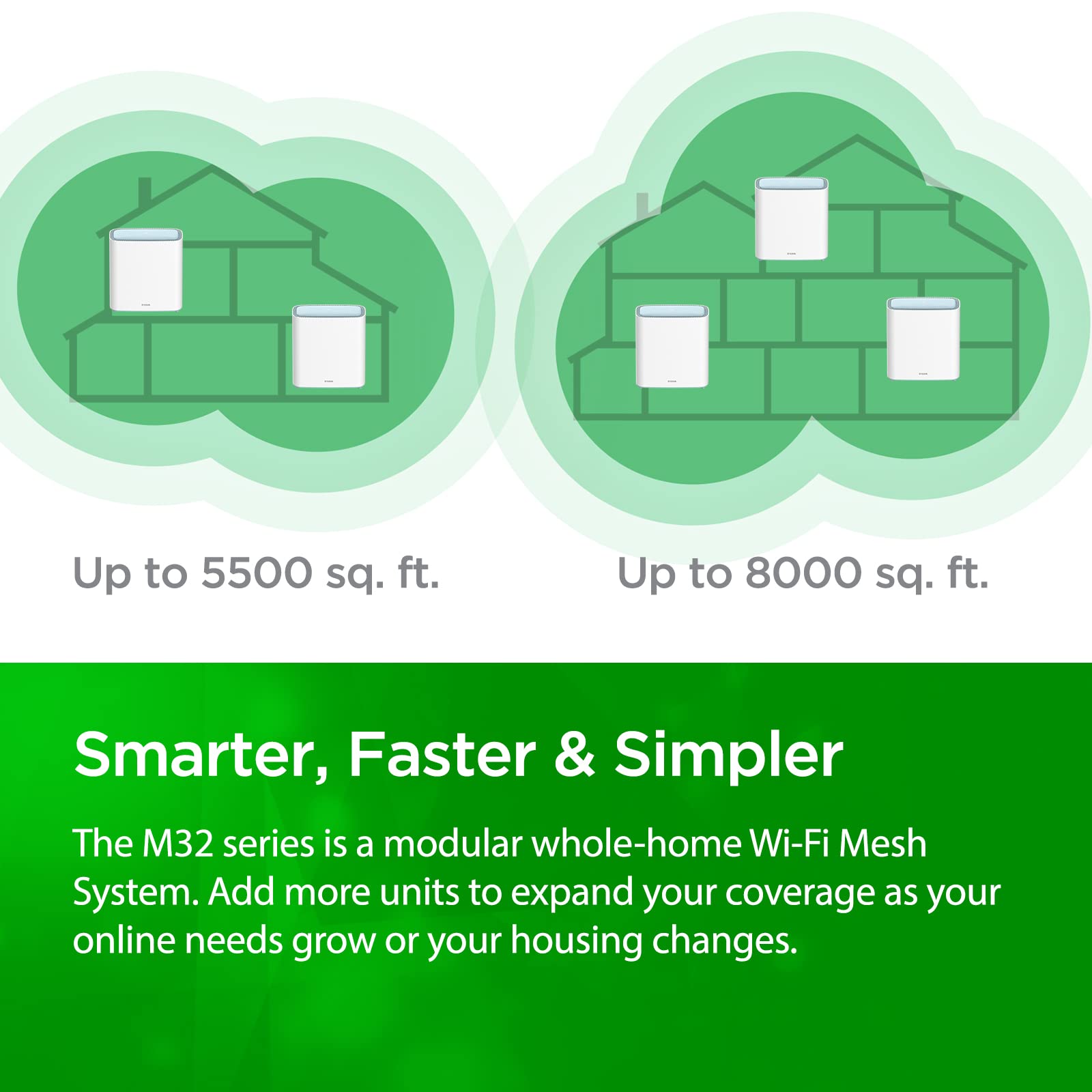 AI OPTIMIZED WI-FI - Built-in AI self-healing and learning capabilities enable the M32 router to run at peak performance, deliver faster and more reliable Wi-Fi performance.