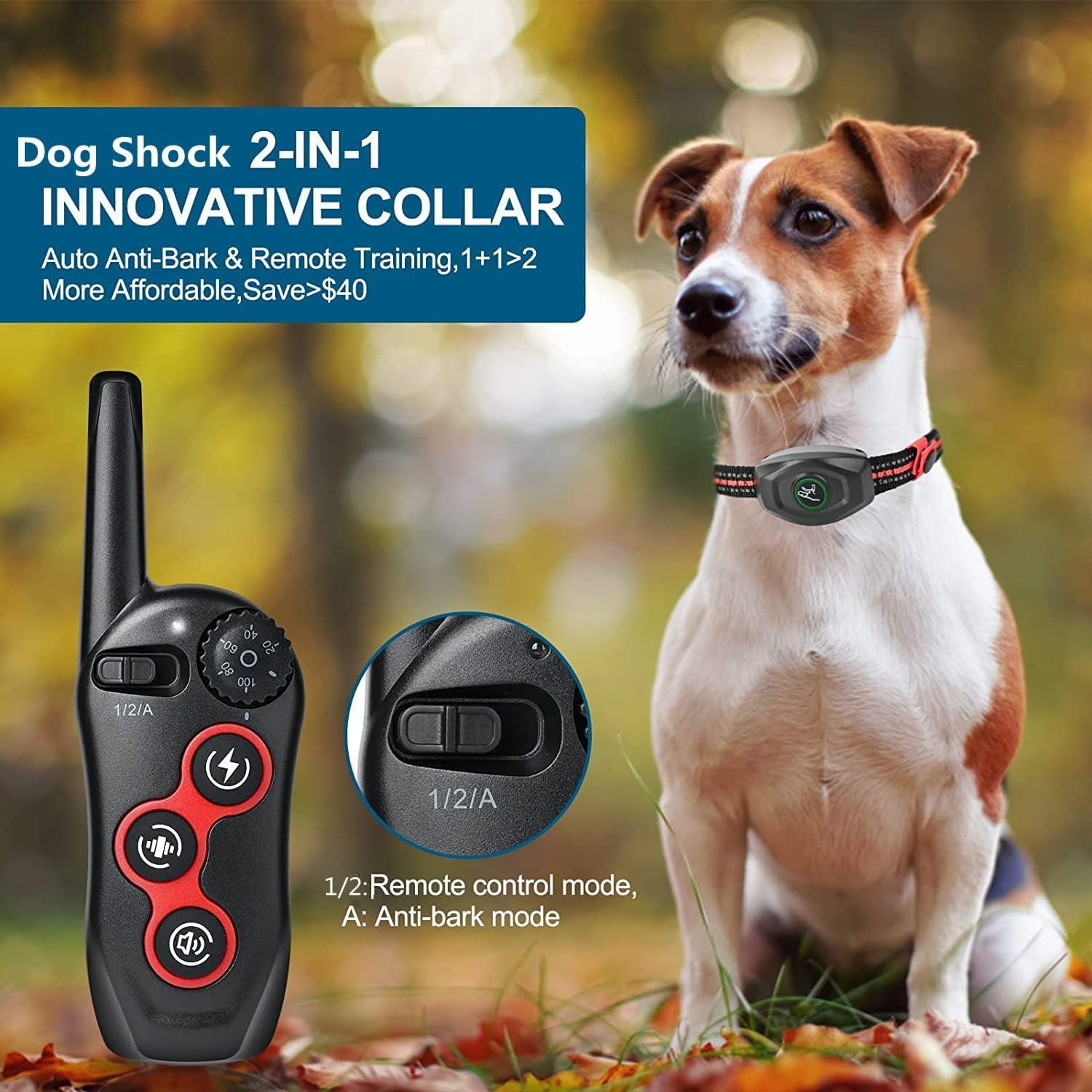 Dog Training Collar - 2 in 1 Rechargeable Remote Dog Shock Anti-Bark Collar w/3 Training Modes, Beep, Vibration, Shock 100% Waterproof, Up 1300Ft Range for Small Medium Large Dogs (Black)