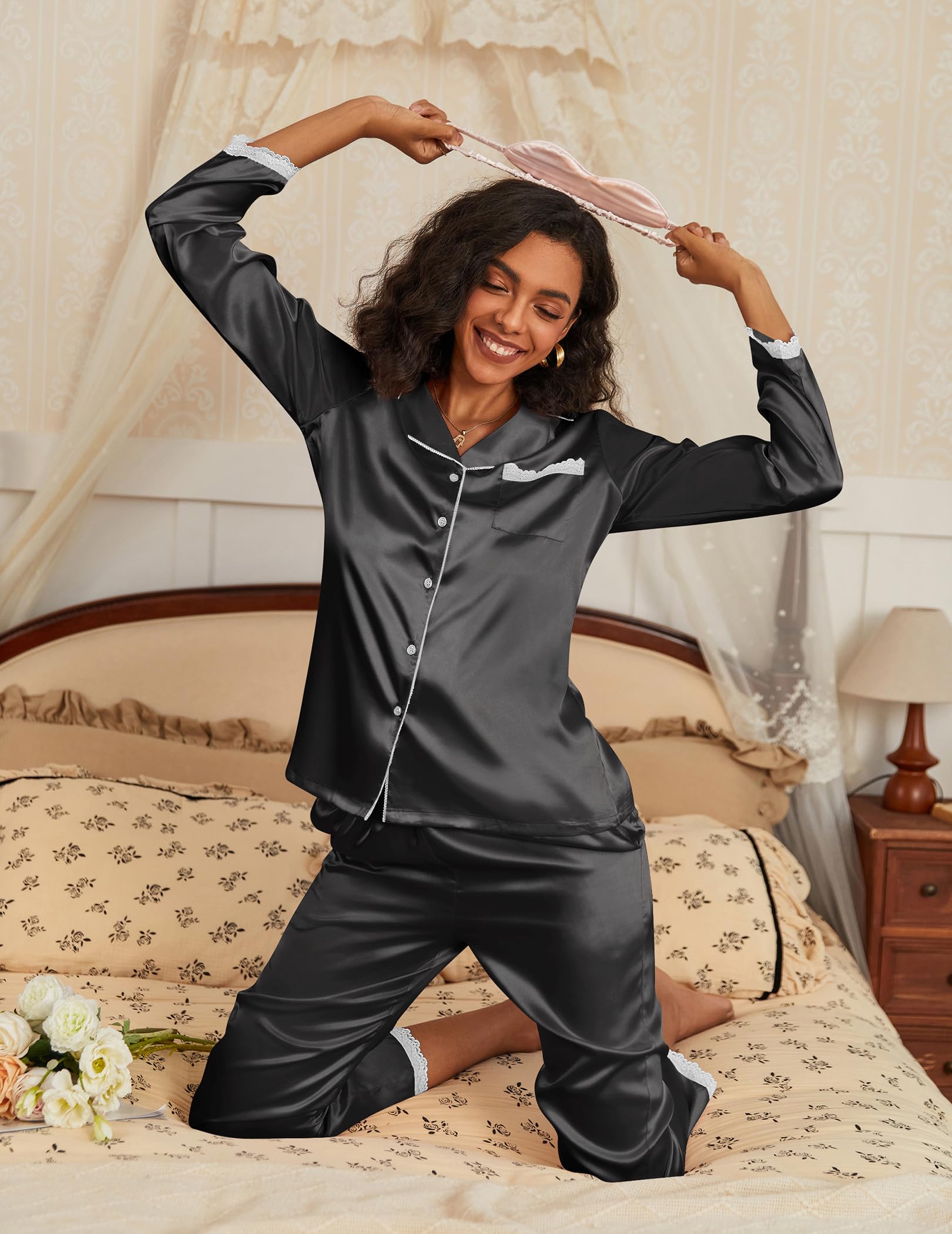 • MATERIAL: This satin pajamas set is made of high-grade silky satin fabric, which is soft and skin-friendly, allowing you to spend a comfortable sleeping time.