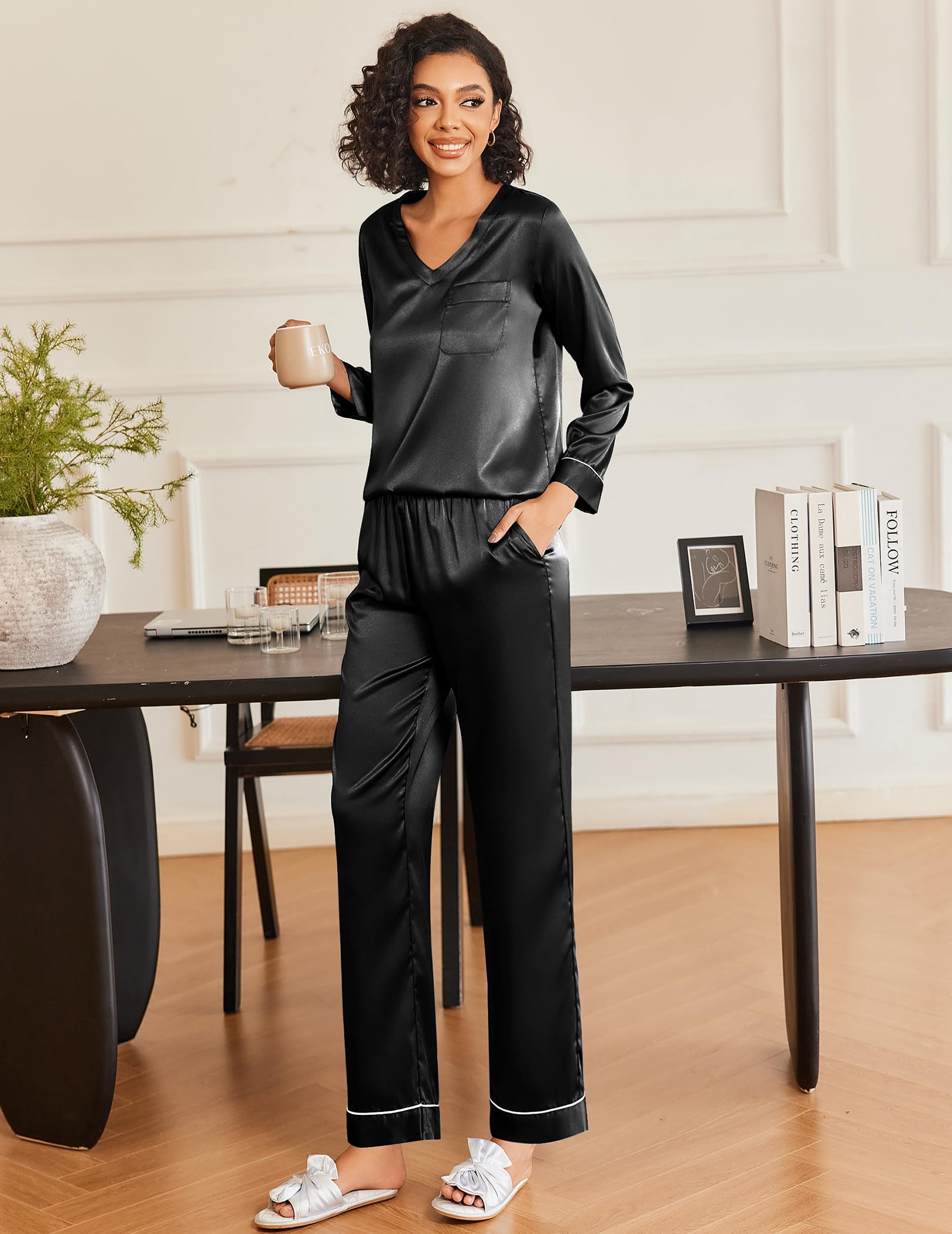 Ekouaer Silk Pajama for Women Long Sleeve Satin Pj Set Two Piece Soft Sleepwear Loungewear S-XXL