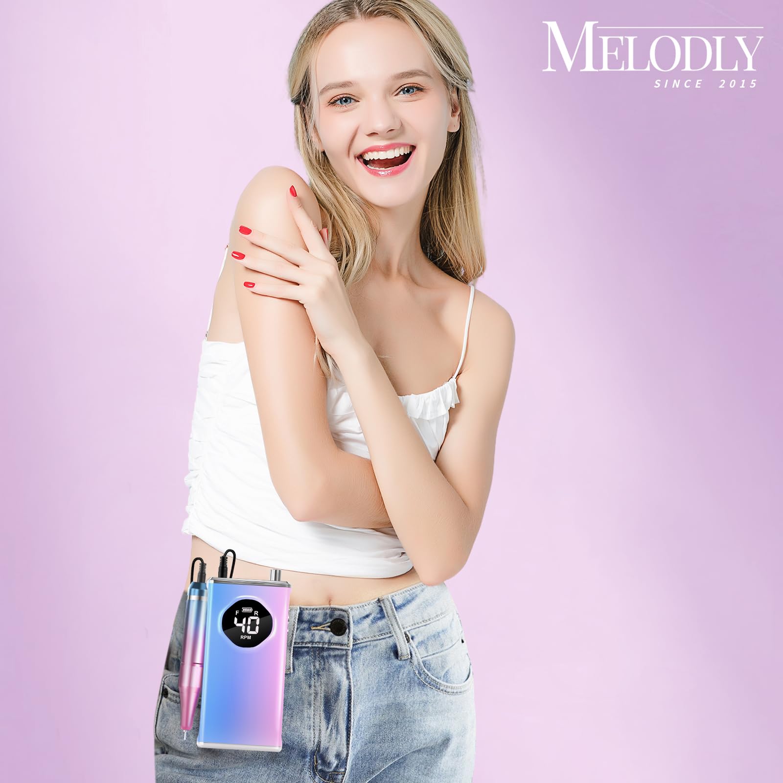 Electric Nail Drill File Professional 40000 RPM, Melodly Rechargeable Electric Nail File Machine Kit for Acrylic Gel Nails Polishing Removing, Portable Cordless Efile with Gold Bits Kit at Salon Home