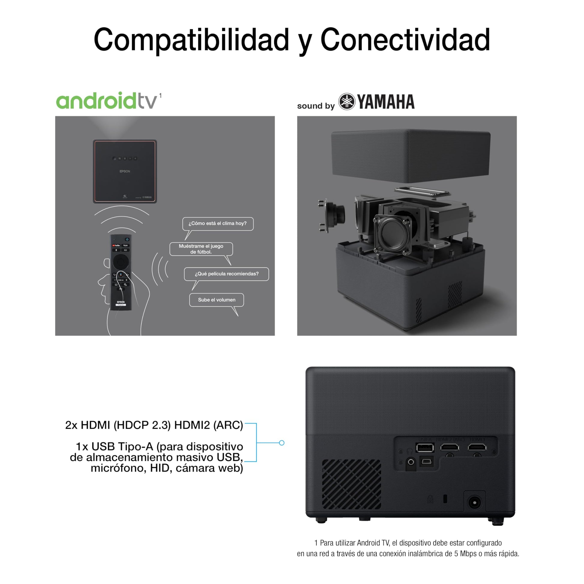 Enjoy an epic viewing experience with the Epson EpiqVision Mini EF12 Smart Streaming Laser Projector. Whether you’re binge-watching your favorite TV shows or hosting an outdoor movie night, the portable Epson EpiqVision EF12 Streaming Laser Projector makes it easy to stream bright images from virtually anywhere in your home, even outside. Featuring built-in Android TV(1), sound by Yamaha and wireless connectivity, the Epson EpiqVision EF12 Streaming Laser Projector gives you seamless access to popular streaming services including Hulu, HBO and YouTube (2), right out of the box. Simply power on the projector and start streaming your favorite content up to an epic 150" – no screen required.