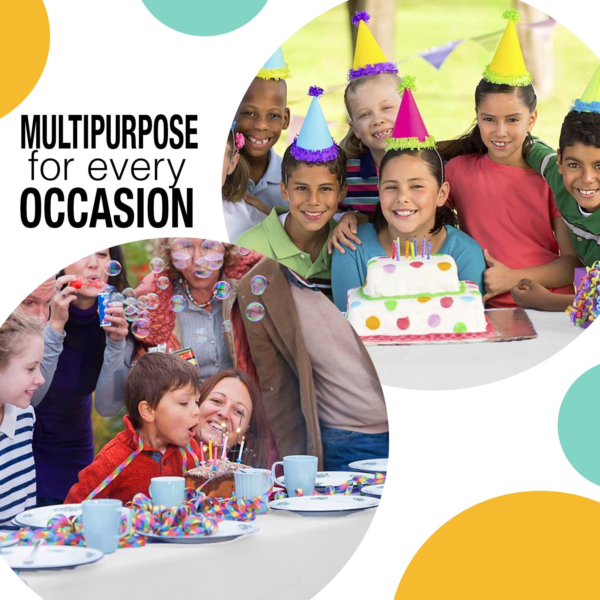 • USES: Let Your Imagination Run Wild. Disposable White Table Cover For 6 Ft Table , 8 Ft Table Or Even A 5 Ft Table And At The Same Time, A Red Carpet Runner For Party . Take This Wonder Of A Box On A Picnic Or Hike, Wedding Party , New Years Eve Party Or Any Other Occasion. It's That Handy Tablecloth You Always Want To Keep Nearby.